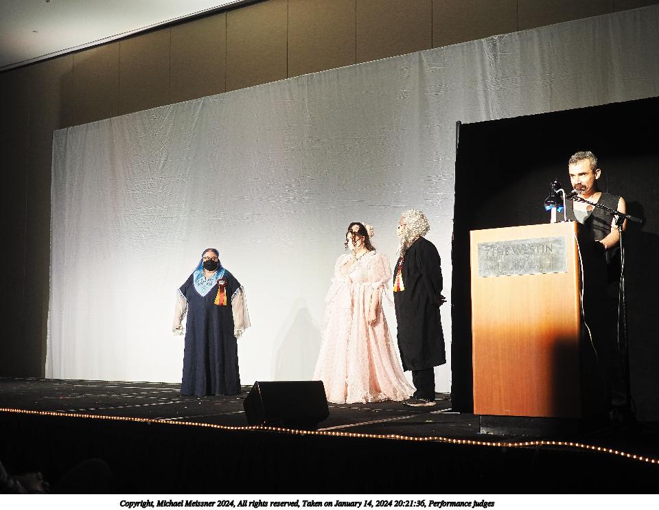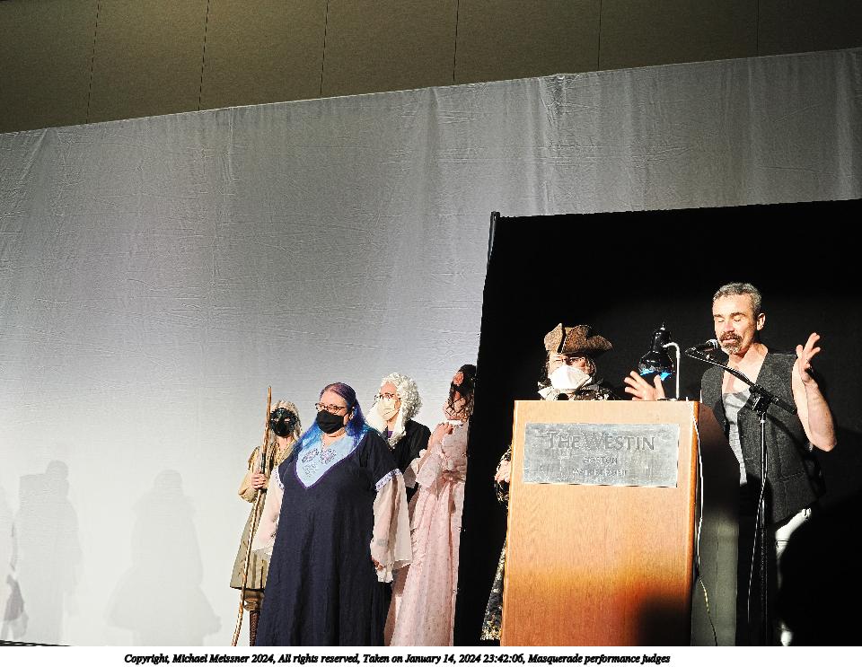 Picture #3: Performance judges Thumb: 480x360, 41,737 bytes (41K) Small: 960x743, 111,567 bytes (109K), (html file) Large: 4800x3600, 3,035,257 bytes (2.9M), (html file) Copyright, Michael Meissner 2024, All rights reserved Olympus E-M5-III camera with Panasonic 20mm f/1.7 lens f/2.0, ISO 200, 1/80 sec, 20.0mm, auto mode, vivid color, SHQ, center weight metering, IS Auto, face detection, anti-shock 35mm equivalent focal length 40.0mm Programs used: crop, raw therapee Taken by Michael Meissner on January 14, 2024 20:21:36 Last modified on January 28, 2024 at 02:44 |
