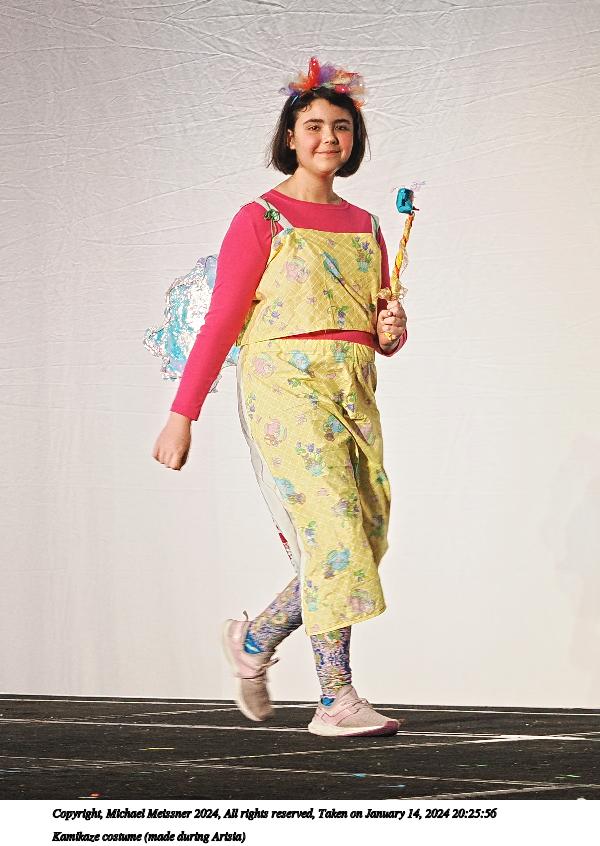 Picture #5: Kamikaze costume (made during Arisia) #2 Thumb: 480x480, 47,767 bytes (47K) Small: 800x823, 97,968 bytes (96K), (html file) Large: 2400x2400, 1,063,264 bytes (1.0M), (html file) Copyright, Michael Meissner 2024, All rights reserved OM OM1 camera with Olympus-m43 12-40mm f/2.8 lens f/2.8, ISO 1000, 1/125 sec, 40.0mm, auto mode, vivid color, center weight metering, continous focus, IS Auto, face detection, anti-shock 35mm equivalent focal length 80.0mm Programs used: crop, raw therapee Taken by Michael Meissner on January 14, 2024 20:25:25 Last modified on January 28, 2024 at 02:45 |
