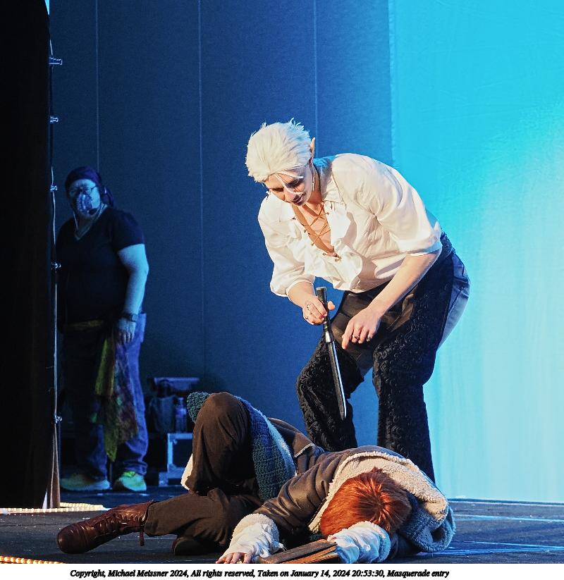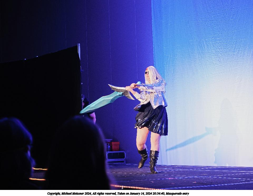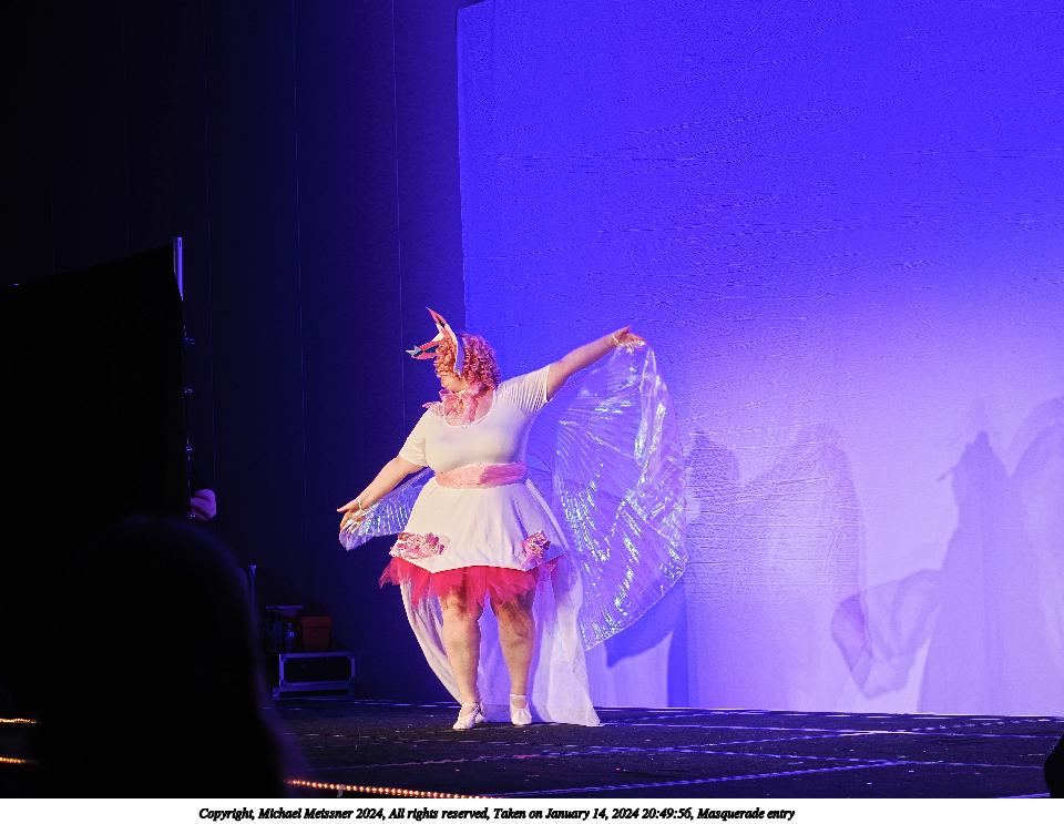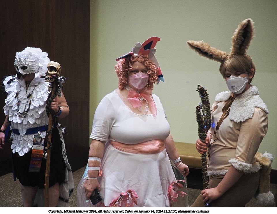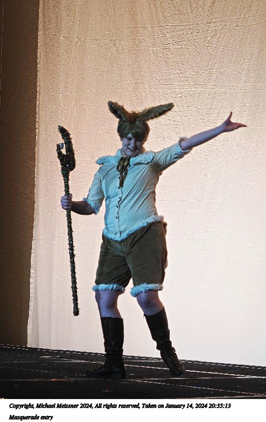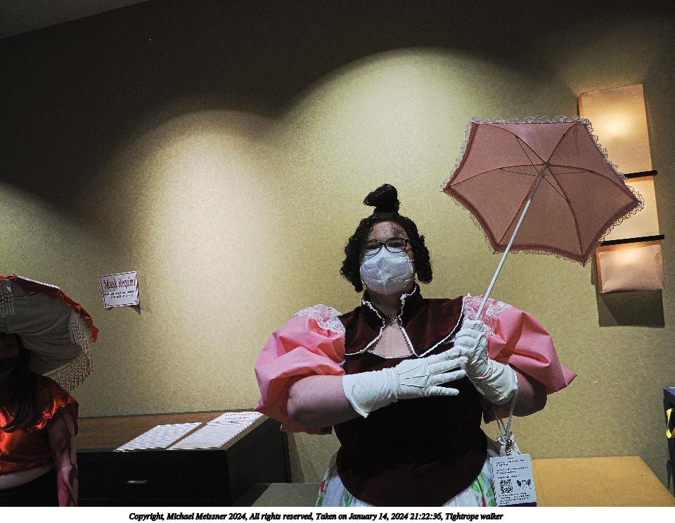 Picture #90: Masquerade entry #42 Thumb: 267x400, 40,789 bytes (40K) Small: 600x946, 121,285 bytes (119K), (html file) Large: 2400x3600, 2,183,634 bytes (2.1M), (html file) Copyright, Michael Meissner 2024, All rights reserved OM OM1 camera with Olympus-m43 12-40mm f/2.8 lens f/2.8, ISO 500, 1/125 sec, 35.0mm, auto mode, vivid color, center weight metering, continous focus, IS Auto, face detection, anti-shock 35mm equivalent focal length 70.0mm Programs used: crop, raw therapee Taken by Michael Meissner on January 14, 2024 20:57:47 Last modified on January 30, 2024 at 23:43 |