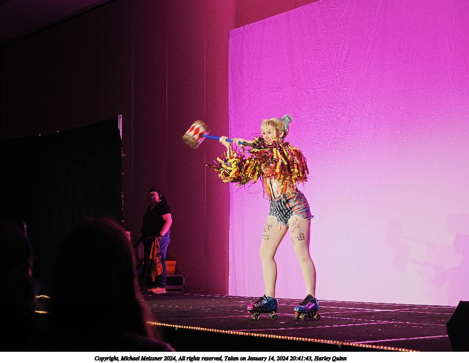 Picture #41: Harley Quinn #4 Thumb: 480x360, 39,213 bytes (39K) Small: 960x743, 96,557 bytes (95K), (html file) Large: 4800x3600, 2,888,680 bytes (2.8M), (html file) Copyright, Michael Meissner 2024, All rights reserved OM OM1 camera with Olympus-m43 12-40mm f/2.8 lens f/2.8, ISO 800, 1/125 sec, 31.0mm, auto mode, vivid color, center weight metering, continous focus, IS Auto, face detection, anti-shock 35mm equivalent focal length 62.0mm Programs used: crop, raw therapee Taken by Michael Meissner on January 14, 2024 20:41:41 Last modified on January 28, 2024 at 03:12 |