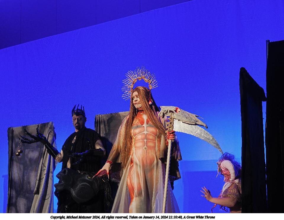 Picture #106: A Great White Throne Thumb: 480x360, 48,830 bytes (48K) Small: 960x743, 141,528 bytes (139K), (html file) Large: 4800x3600, 4,382,419 bytes (4.2M), (html file) Copyright, Michael Meissner 2024, All rights reserved OM OM1 camera with Olympus-m43 12-40mm f/2.8 lens f/2.8, ISO 320, 1/125 sec, 35.0mm, auto mode, vivid color, center weight metering, bias -0.7, continous focus, IS Auto, face detection, anti-shock 35mm equivalent focal length 70.0mm Programs used: crop, raw therapee Taken by Michael Meissner on January 14, 2024 21:10:17 Last modified on January 30, 2024 at 23:55 |