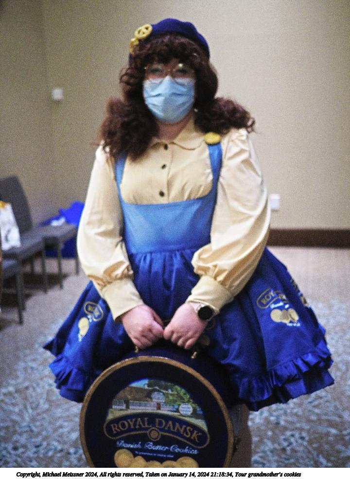 Picture #50: Your grandmother's cookies #2 Thumb: 480x360, 39,889 bytes (39K) Small: 960x743, 89,624 bytes (88K), (html file) Large: 4800x3600, 2,485,507 bytes (2.4M), (html file) Copyright, Michael Meissner 2024, All rights reserved OM OM1 camera with Olympus-m43 12-40mm f/2.8 lens f/2.8, ISO 320, 1/125 sec, 38.0mm, auto mode, vivid color, center weight metering, continous focus, IS Auto, face detection, anti-shock 35mm equivalent focal length 76.0mm Programs used: crop, raw therapee Taken by Michael Meissner on January 14, 2024 20:45:01 Last modified on January 28, 2024 at 18:49 |
