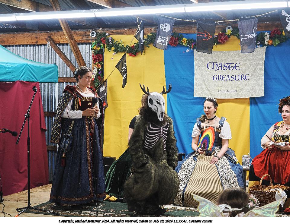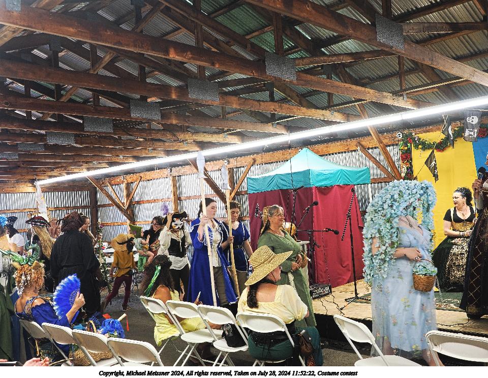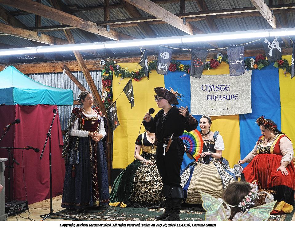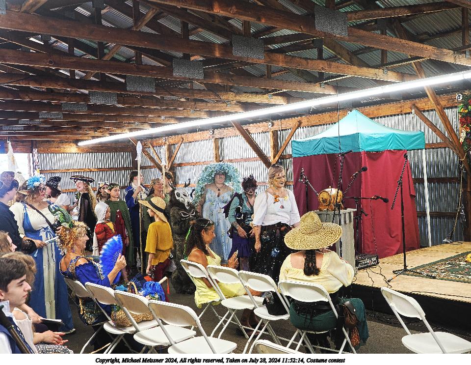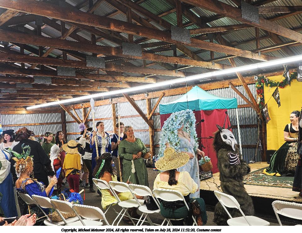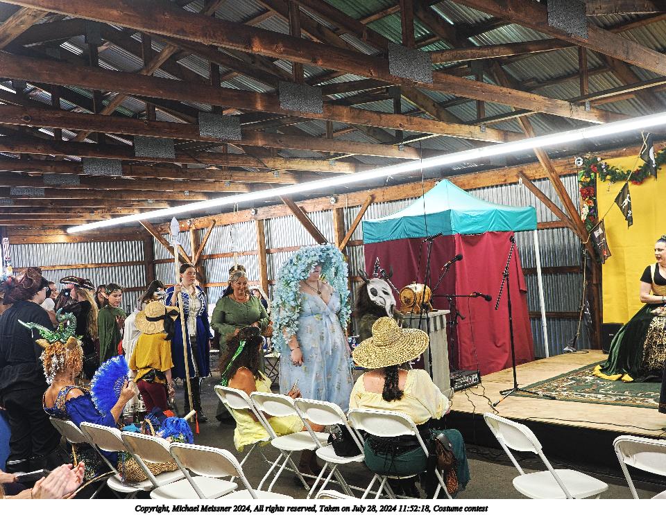Picture #39: Costume contest #28 Small: 960x743, 233,851 bytes (229K), (html file) Large: 4800x3600, 5,954,988 bytes (5.7M), (html file) Copyright, Michael Meissner 2024, All rights reserved OM OM1 camera with Olympus-m43 12-40mm f/2.8 lens f/2.8, ISO 400, flash, 1/60 sec, 16.0mm, auto mode, vivid color, matrix metering, continous focus, IS Auto, anti-shock 35mm equivalent focal length 32.0mm Programs used: crop, raw therapee Taken by Michael Meissner on July 28, 2024 11:52:25 Last modified on September 11, 2024 at 02:30 |