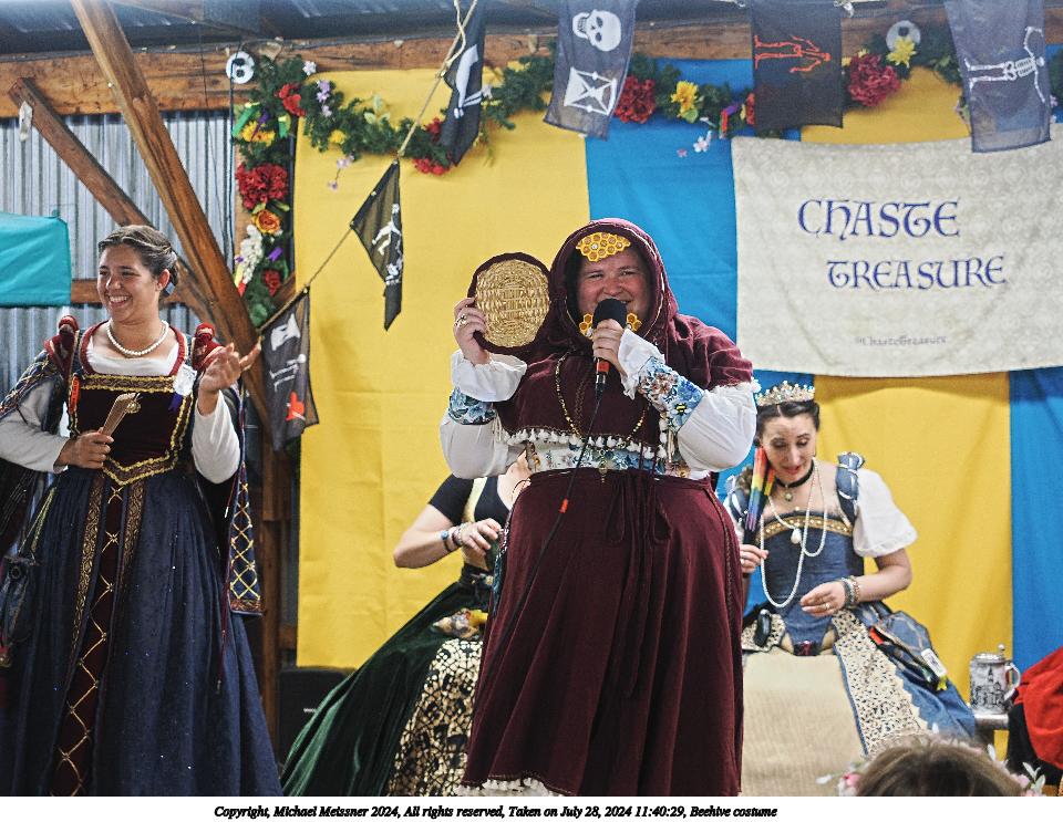 Picture #15: Beehive costume #5 Small: 960x743, 198,464 bytes (194K), (html file) Large: 4800x3600, 5,300,566 bytes (5.1M), (html file) Copyright, Michael Meissner 2024, All rights reserved OM OM1 camera with Olympus-m43 12-40mm f/2.8 lens f/2.8, ISO 500, flash, 1/80 sec, 38.0mm, auto mode, vivid color, matrix metering, continous focus, IS Auto, face detection, anti-shock 35mm equivalent focal length 76.0mm Programs used: crop, raw therapee Taken by Michael Meissner on July 28, 2024 11:41:06 Last modified on September 11, 2024 at 02:22 |