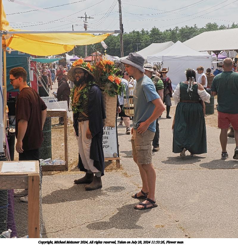 Picture #7: Flower man Small: 800x823, 203,493 bytes (199K), (html file) Large: 2400x2400, 4,518,139 bytes (4.3M), (html file) Copyright, Michael Meissner 2024, All rights reserved OM OM1 camera with Olympus-m43 12-40mm f/2.8 lens f/8.0, ISO 200, flash, 1/500 sec, 15.0mm, auto mode, vivid color, matrix metering, continous focus, IS Auto 35mm equivalent focal length 30.0mm Programs used: crop, gimp, raw therapee Taken by Michael Meissner on July 28, 2024 11:53:26 Last modified on September 12, 2024 at 01:27 |
