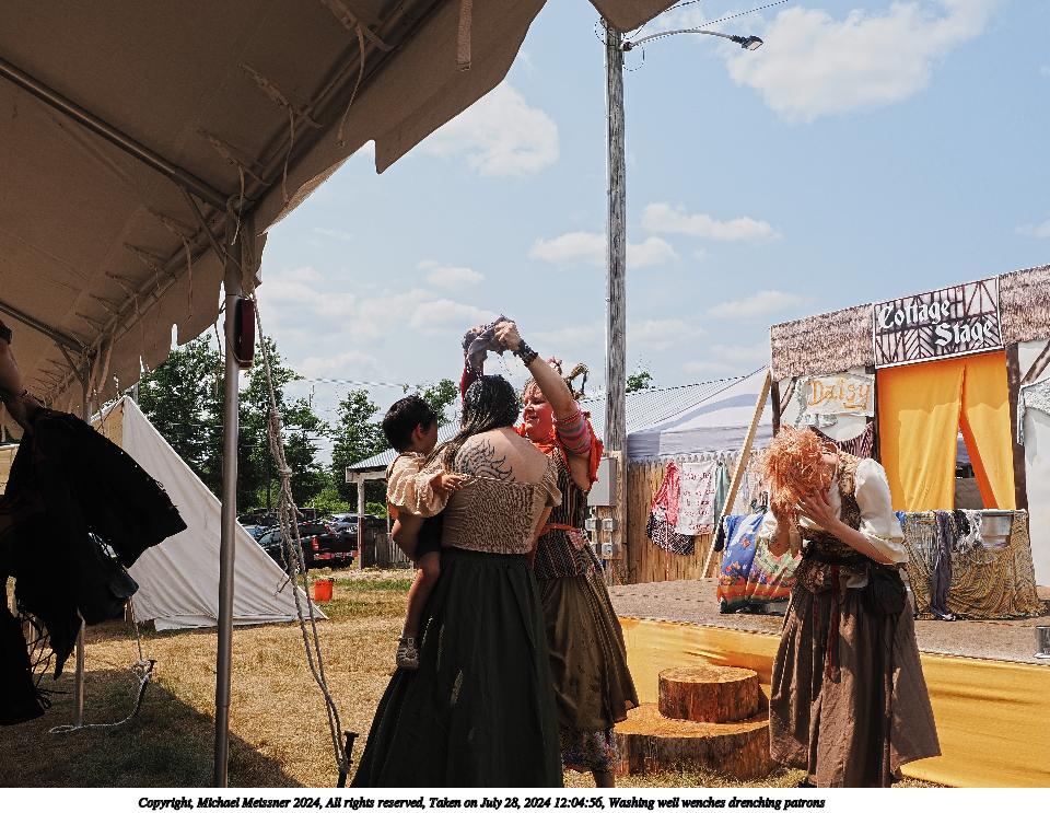 Picture #4: Washing well wenches drenching patrons #4 Small: 960x743, 149,976 bytes (147K), (html file) Large: 4800x3600, 3,656,158 bytes (3.5M), (html file) Copyright, Michael Meissner 2024, All rights reserved OM OM1 camera with Olympus-m43 12-40mm f/2.8 lens f/8.0, ISO 200, flash, 1/500 sec, 17.0mm, auto mode, vivid color, matrix metering, continous focus, IS Auto, face detection 35mm equivalent focal length 34.0mm Programs used: crop, raw therapee Taken by Michael Meissner on July 28, 2024 13:09:13 Last modified on September 12, 2024 at 01:48 |