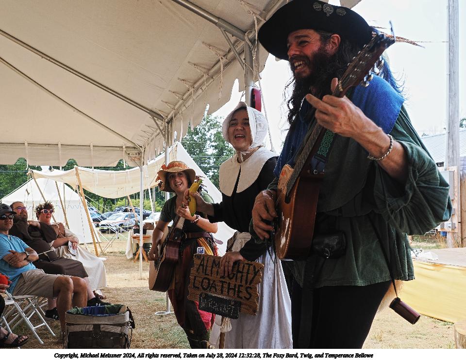 Picture #3: The Foxy Bard, Twig, and Temperance Bellowe #3 Small: 960x743, 210,073 bytes (206K), (html file) Large: 4800x3600, 11,681,579 bytes (12M), (html file) Copyright, Michael Meissner 2024, All rights reserved OM OM1 camera with Olympus-m43 12-40mm f/2.8 lens f/6.3, ISO 200, flash, 1/320 sec, 12.0mm, auto mode, vivid color, matrix metering, continous focus, IS Auto, face detection, anti-shock 35mm equivalent focal length 24.0mm Programs used: crop, gimp, raw therapee Taken by Michael Meissner on July 28, 2024 12:32:13 Last modified on September 12, 2024 at 01:39 |