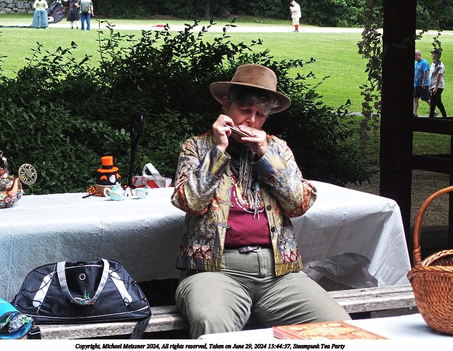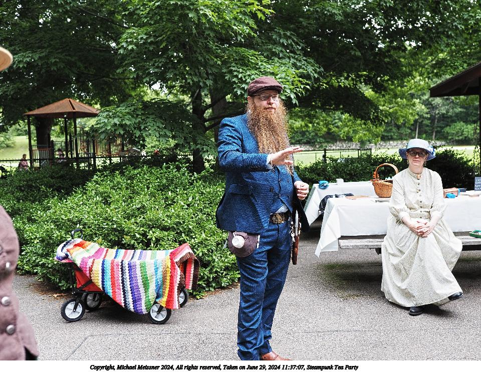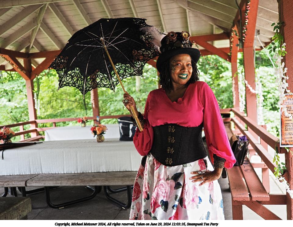 Picture #1: Steampunk Tea Party Small: 960x743, 264,094 bytes (258K), (html file) Large: 4800x3600, 6,271,568 bytes (6.0M), (html file) Copyright, Michael Meissner 2024, All rights reserved Olympus E-M5-III camera with Olympus-m43 17mm f/1.2 lens f/2.2, ISO 200, 1/200 sec, 17.0mm, auto mode, vivid color, SHQ, center weight metering, IS Auto, face detection, anti-shock 35mm equivalent focal length 34.0mm Programs used: crop, raw therapee Taken by Michael Meissner on June 29, 2024 11:37:07 Last modified on July 07, 2024 at 00:19 |