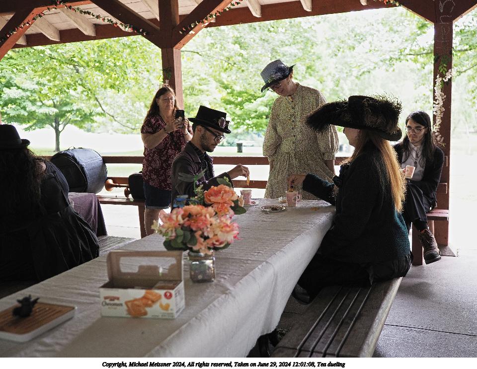 Picture #2: Tea dueling Small: 960x743, 165,017 bytes (162K), (html file) Large: 4800x3600, 9,208,683 bytes (8.8M), (html file) Copyright, Michael Meissner 2024, All rights reserved Olympus E-M5-III camera with Olympus-m43 17mm f/1.2 lens f/1.6, ISO 200, 1/100 sec, 17.0mm, auto mode, vivid color, SHQ, center weight metering, IS Auto, face detection, anti-shock 35mm equivalent focal length 34.0mm Programs used: crop, gimp, raw therapee Taken by Michael Meissner on June 29, 2024 12:01:08 Last modified on July 07, 2024 at 00:24 |