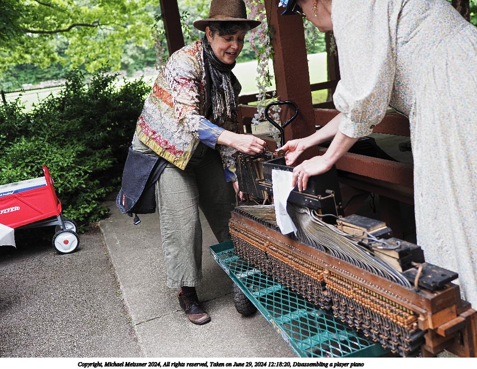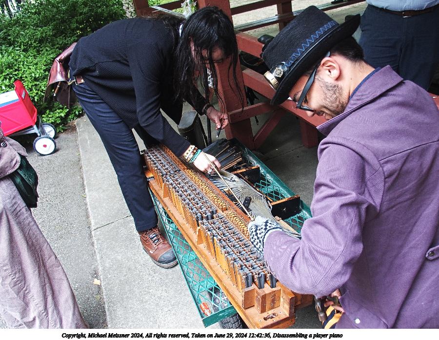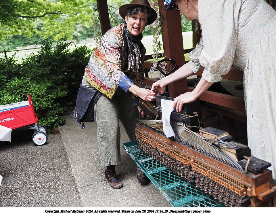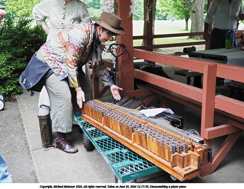Picture #4: Disassembling a player piano Small: 960x743, 210,374 bytes (206K), (html file) Large: 4800x3600, 5,178,343 bytes (4.9M), (html file) Copyright, Michael Meissner 2024, All rights reserved Olympus E-M5-III camera with Olympus-m43 17mm f/1.2 lens f/1.4, ISO 200, 1/80 sec, 17.0mm, auto mode, vivid color, SHQ, center weight metering, IS Auto, face detection, anti-shock 35mm equivalent focal length 34.0mm Programs used: crop, raw therapee Taken by Michael Meissner on June 29, 2024 12:17:59 Last modified on July 07, 2024 at 00:27 |