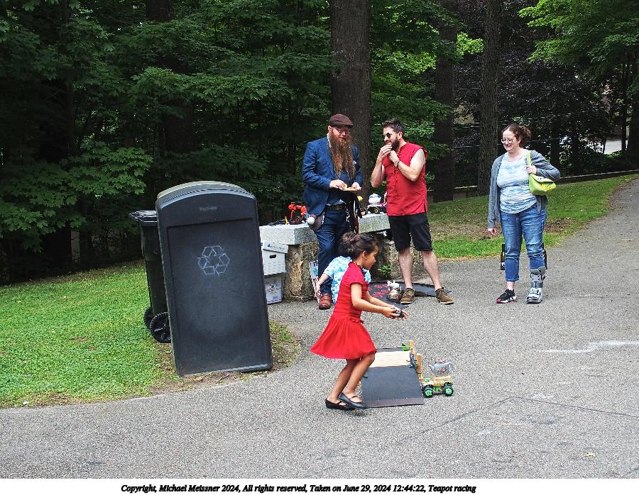 Picture #8: Teapot racers Small: 900x623, 147,194 bytes (144K), (html file) Large: 3600x2400, 6,016,766 bytes (5.7M), (html file) Copyright, Michael Meissner 2024, All rights reserved Olympus E-M5-III camera with Olympus-m43 17mm f/1.2 lens f/2.0, ISO 200, 1/100 sec, 17.0mm, auto mode, vivid color, SHQ, center weight metering, IS Auto, face detection, anti-shock 35mm equivalent focal length 34.0mm Programs used: crop, gimp, raw therapee Taken by Michael Meissner on June 29, 2024 12:20:53 Last modified on July 07, 2024 at 00:32 |