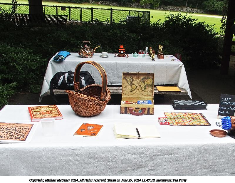 Picture #26: Steampunk Tea Party #9 Small: 900x698, 185,387 bytes (182K), (html file) Large: 3600x2700, 2,992,664 bytes (2.9M), (html file) Copyright, Michael Meissner 2024, All rights reserved Olympus Stylus-1 camera f/3.5, ISO 100, 1/250 sec, 9.8mm, auto mode, vivid color, SHQ, matrix metering, IS Auto, noise reduction auto 35mm equivalent focal length 46.0mm Programs used: crop, raw therapee Taken by Michael Meissner on June 29, 2024 13:47:12 Last modified on July 07, 2024 at 01:46 |