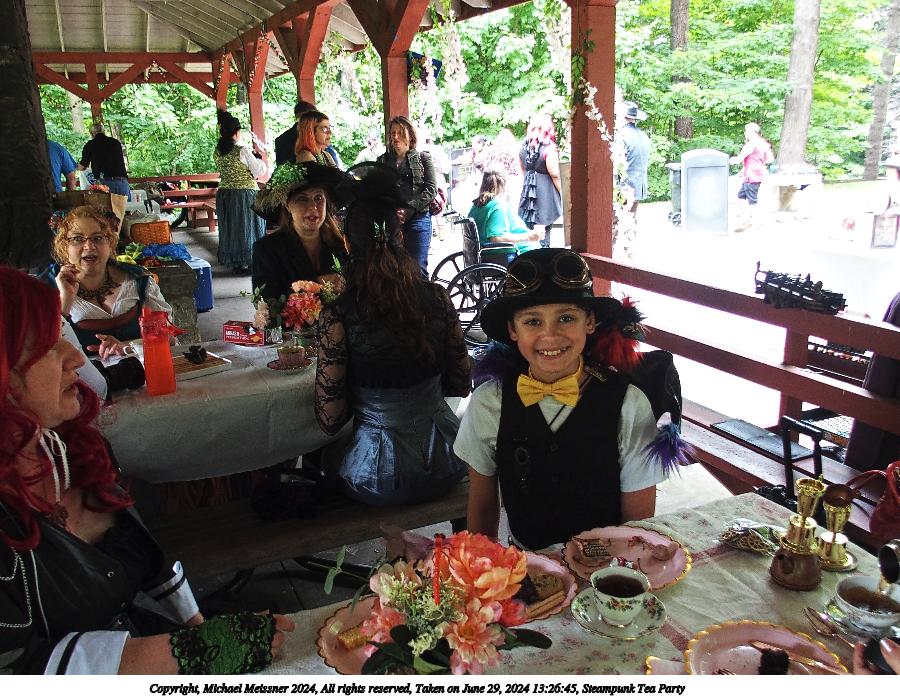 Picture #29: Steampunk Tea Party #11 Small: 900x698, 186,769 bytes (183K), (html file) Large: 3600x2700, 2,947,018 bytes (2.8M), (html file) Copyright, Michael Meissner 2024, All rights reserved Olympus Stylus-1 camera f/3.5, ISO 100, 1/320 sec, 10.8mm, auto mode, vivid color, SHQ, matrix metering, IS Auto, noise reduction auto 35mm equivalent focal length 50.0mm Programs used: crop, raw therapee Taken by Michael Meissner on June 29, 2024 14:03:49 Last modified on July 07, 2024 at 01:47 |