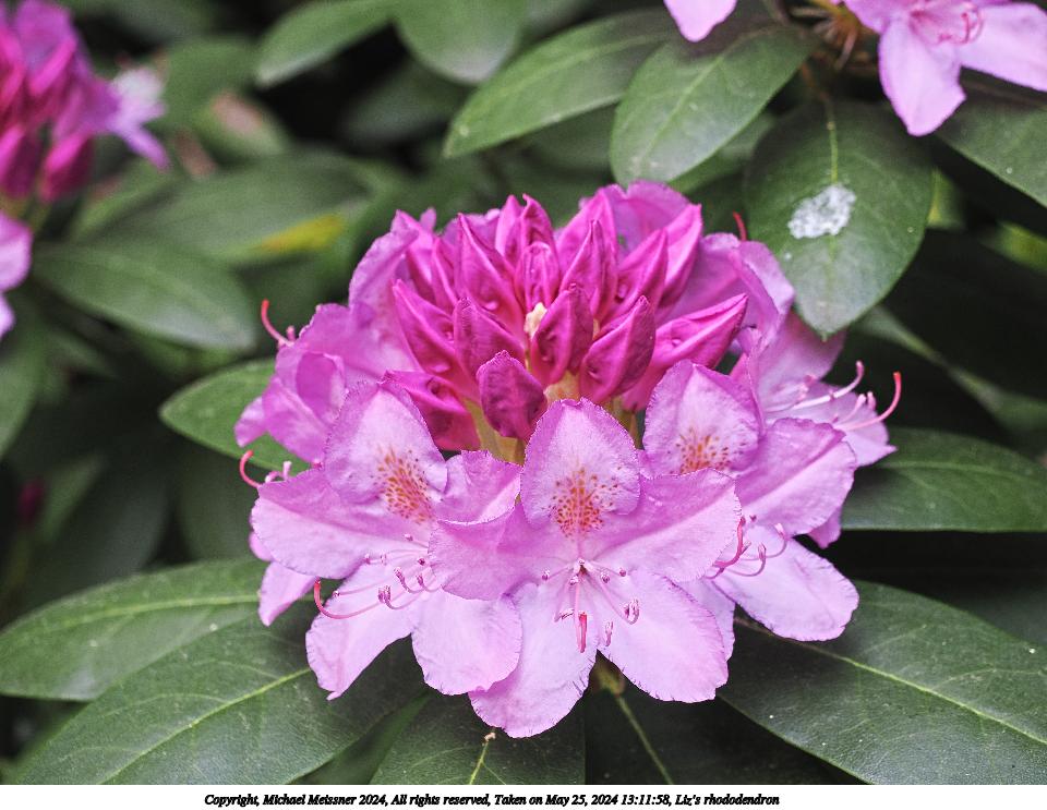 Picture #6: Liz's rhododendron #2 960x743, 122,499 bytes (120K), (html file) Copyright, Michael Meissner 2024, All rights reserved OM OM1 camera with Olympus-m43 12-40mm f/2.8 lens f/4.5, ISO 200, 1/160 sec, 38.0mm, auto mode, vivid color, center weight metering, auto + manual focus, IS Auto, face detection, anti-shock 35mm equivalent focal length 76.0mm Programs used: crop, raw therapee Taken by Michael Meissner on May 25, 2024 13:11:58 Last modified on June 02, 2024 at 00:56 This picture is one of my favorites. |