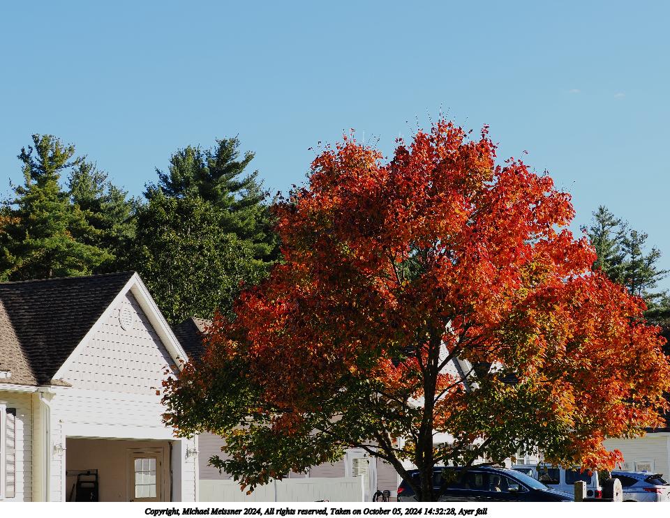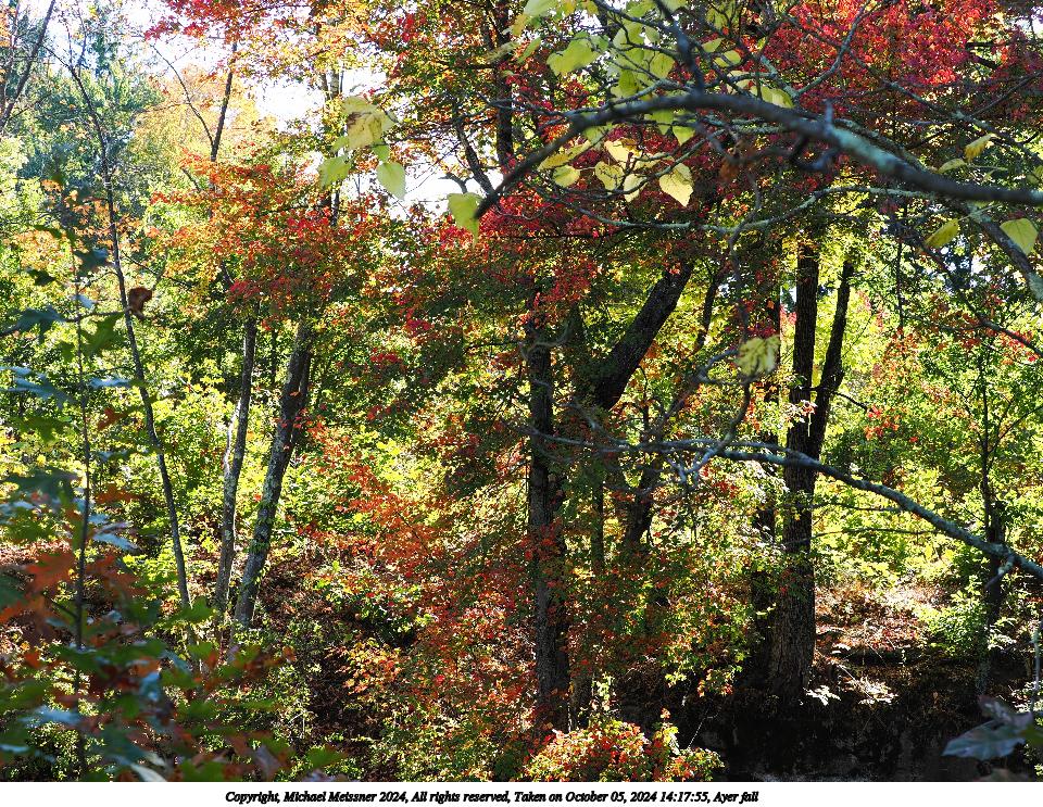 Picture #14: Ayer fall #10 960x743, 155,375 bytes (152K), (html file) Copyright, Michael Meissner 2024, All rights reserved OM OM1 camera with Olympus-m43 12-200mm f/3.5-6.3 lens f/11.0, ISO 200, 1/400 sec, 23.0mm, auto mode, vivid color, matrix metering, continous focus, IS Auto 35mm equivalent focal length 46.0mm Programs used: crop, gimp, raw therapee Taken by Michael Meissner on October 21, 2024 13:54:43 Last modified on October 26, 2024 at 21:25 This picture is one of my favorites. |