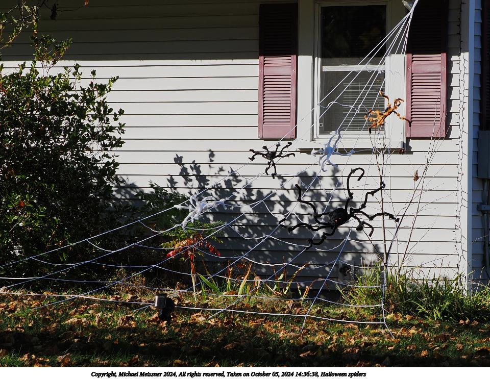 Picture #76: Halloween spiders #2 960x743, 290,641 bytes (284K), (html file) Copyright, Michael Meissner 2024, All rights reserved OM OM1 camera with Olympus-m43 40-150mm f/2.8 lens f/6.3, ISO 200, 1/500 sec, 60.0mm, auto mode, vivid color, matrix metering, digital zoom x2, continous focus, IS Auto 35mm equivalent focal length 240.0mm, digital zoom x2 Programs used: crop, raw therapee Taken by Michael Meissner on October 05, 2024 14:36:54 Last modified on October 06, 2024 at 16:12 |