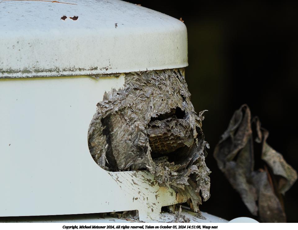Picture #73: Wasp nest 960x743, 110,612 bytes (109K), (html file) Copyright, Michael Meissner 2024, All rights reserved OM OM1 camera with Olympus-m43 40-150mm f/2.8 lens f/2.8, ISO 320, 1/200 sec, 100.0mm, auto mode, vivid color, matrix metering, digital zoom x2, continous focus, IS Auto, anti-shock 35mm equivalent focal length 401.0mm, digital zoom x2 Programs used: crop, raw therapee Taken by Michael Meissner on October 05, 2024 14:51:08 Last modified on October 06, 2024 at 16:16 |
