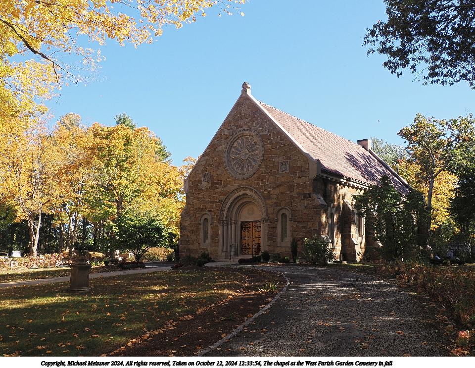Picture #55: The chapel at the West Parish Garden Cemetery in fall #4 960x743, 325,564 bytes (318K), (html file) Copyright, Michael Meissner 2024, All rights reserved OM OM1 camera with Olympus-m43 12-200mm f/3.5-6.3 lens f/7.1, ISO 200, 1/160 sec, 28.0mm, auto mode, vivid color, matrix metering, continous focus, IS Auto, anti-shock 35mm equivalent focal length 56.0mm Programs used: adjusttime, crop, raw therapee Taken by Michael Meissner on October 12, 2024 12:39:33 Last modified on October 13, 2024 at 16:33 This picture is one of my favorites. |