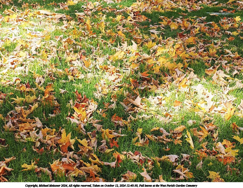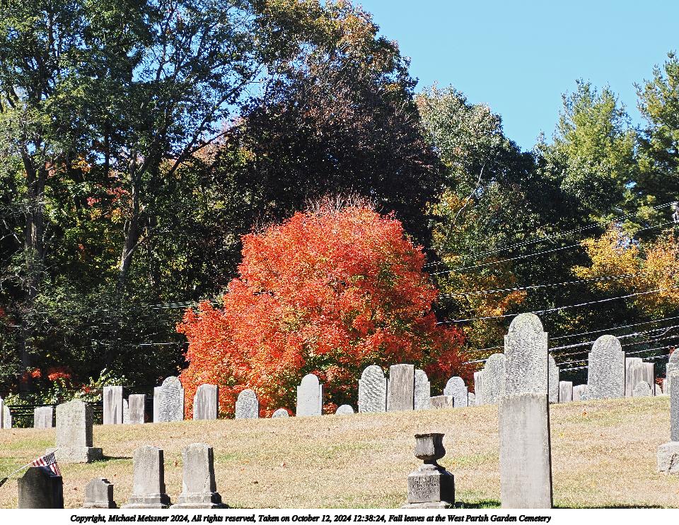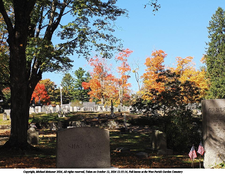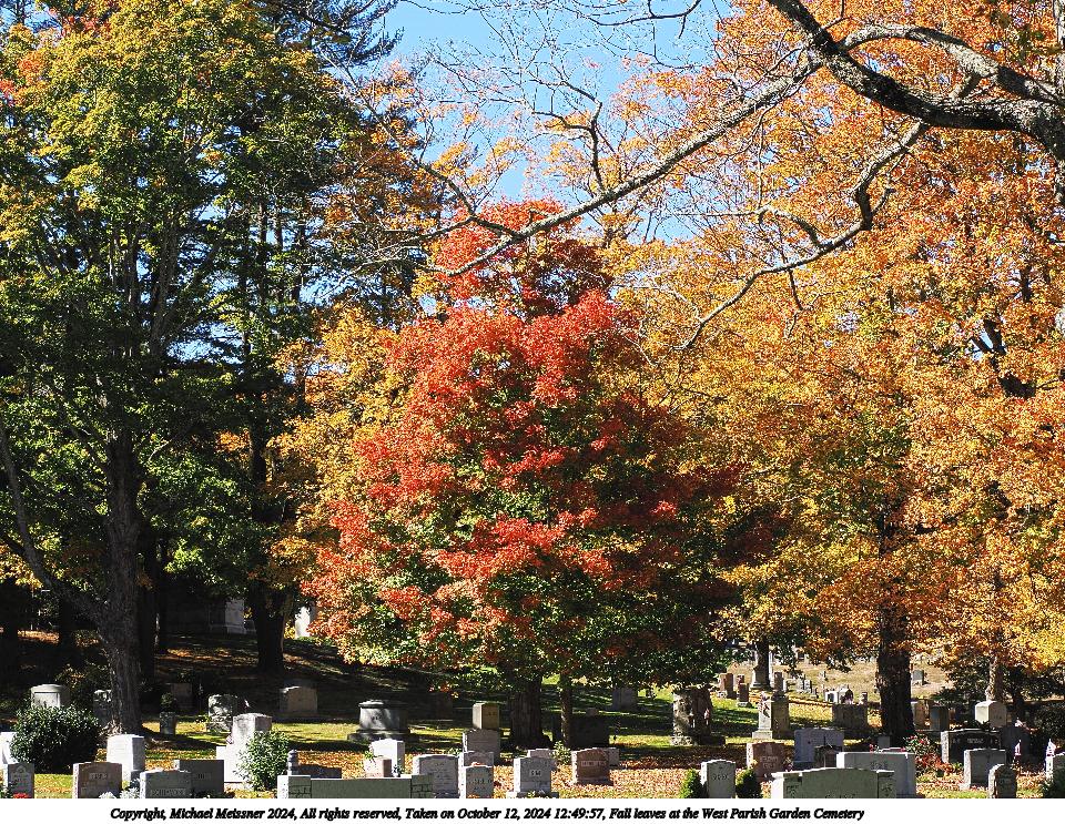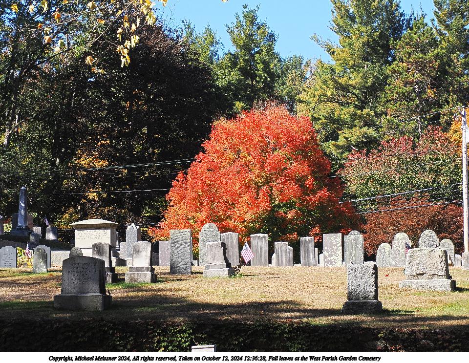 Picture #47: Fall leaves at the West Parish Garden Cemetery #19 960x743, 346,190 bytes (339K), (html file) Copyright, Michael Meissner 2024, All rights reserved Olympus E-M5-III camera with Olympus-m43 7-14mm f/2.8 lens f/4.0, ISO 200, 1/125 sec, 7.0mm, auto mode, vivid color, SHQ, matrix metering, bias 0.3, IS Auto, anti-shock 35mm equivalent focal length 14.0mm Programs used: crop, raw therapee Taken by Michael Meissner on October 12, 2024 12:41:51 Last modified on October 13, 2024 at 16:35 This picture is one of my favorites. |
