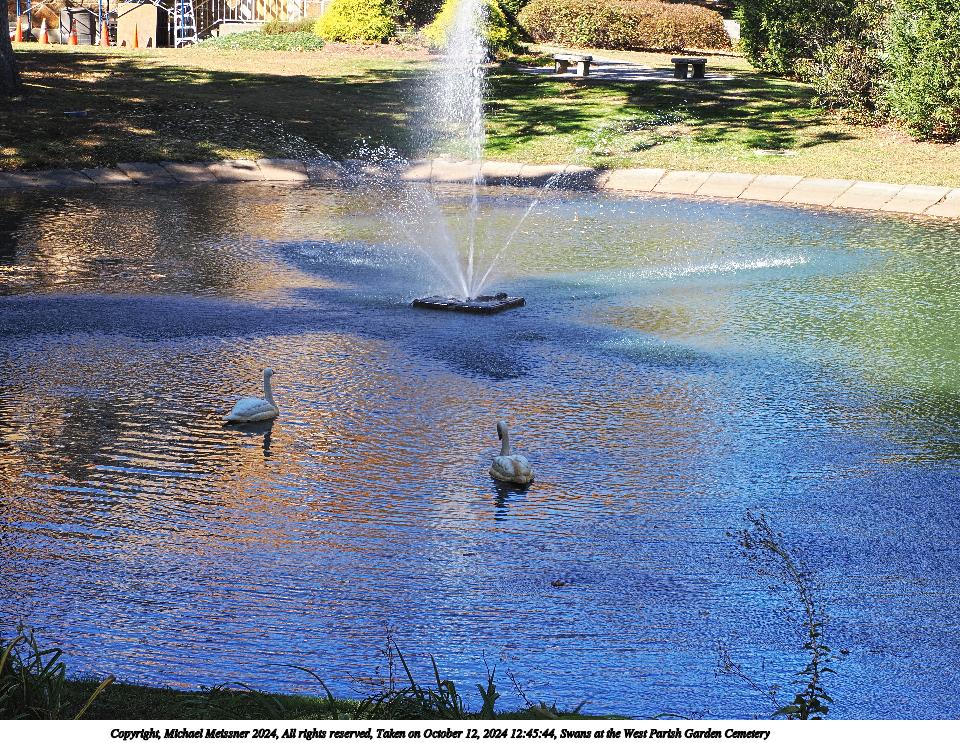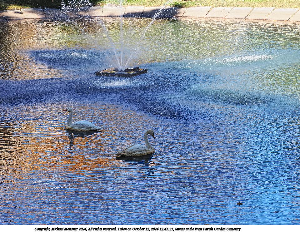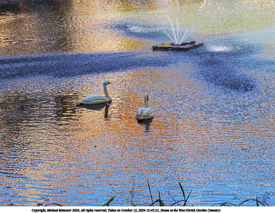 Picture #44: Swans at the West Parish Garden Cemetery 960x743, 311,700 bytes (305K), (html file) Copyright, Michael Meissner 2024, All rights reserved OM OM1 camera with Olympus-m43 12-200mm f/3.5-6.3 lens f/7.1, ISO 200, 1/160 sec, 63.0mm, auto mode, vivid color, matrix metering, continous focus, IS Auto, anti-shock 35mm equivalent focal length 126.0mm Programs used: adjusttime, crop, raw therapee Taken by Michael Meissner on October 12, 2024 12:45:21 Last modified on October 13, 2024 at 16:37 |