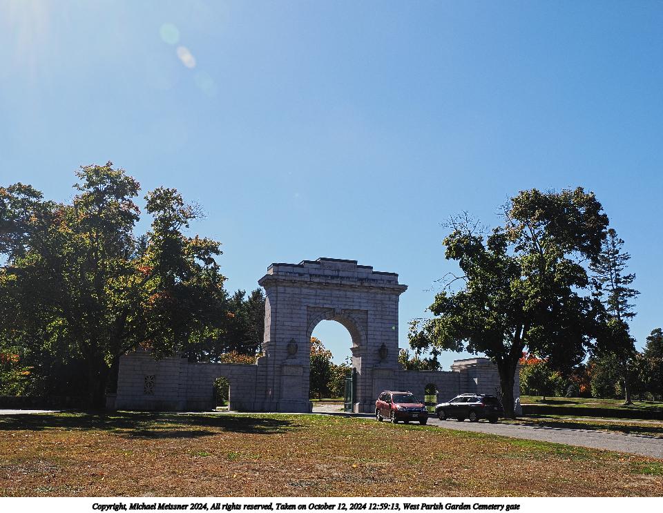 Picture #33: West Parish Garden Cemetery gate 960x743, 179,322 bytes (176K), (html file) Copyright, Michael Meissner 2024, All rights reserved OM OM1 camera with Olympus-m43 12-200mm f/3.5-6.3 lens f/9.0, ISO 200, 1/320 sec, 17.0mm, auto mode, vivid color, matrix metering, continous focus, IS Auto 35mm equivalent focal length 34.0mm Programs used: adjusttime, crop, raw therapee Taken by Michael Meissner on October 12, 2024 12:59:13 Last modified on October 13, 2024 at 16:43 |
