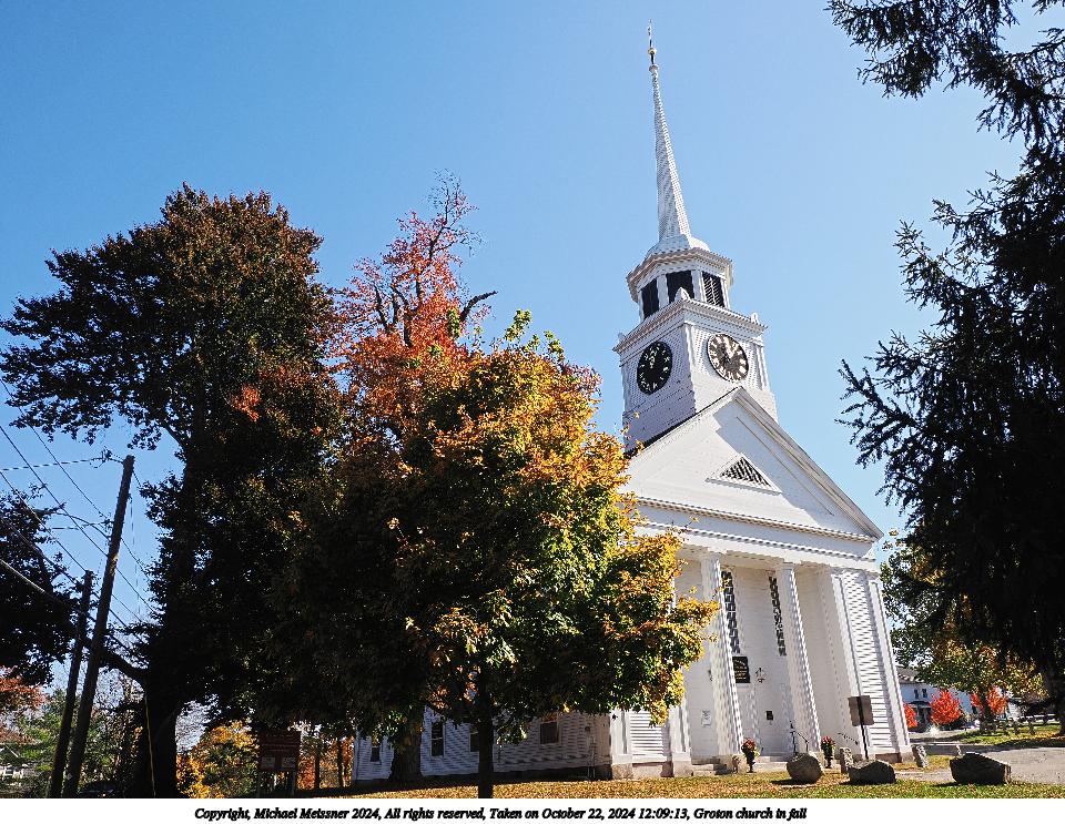 Picture #3: Groton church in fall 960x743, 210,312 bytes (206K), (html file) Copyright, Michael Meissner 2024, All rights reserved OM OM1 camera with Olympus-m43 12-200mm f/3.5-6.3 lens f/8.0, ISO 200, 1/320 sec, 13.0mm, auto mode, vivid color, matrix metering, continous focus, IS Auto, anti-shock 35mm equivalent focal length 26.0mm Programs used: crop, raw therapee Taken by Michael Meissner on October 22, 2024 12:09:02 Last modified on October 26, 2024 at 21:32 This picture is one of my favorites. |