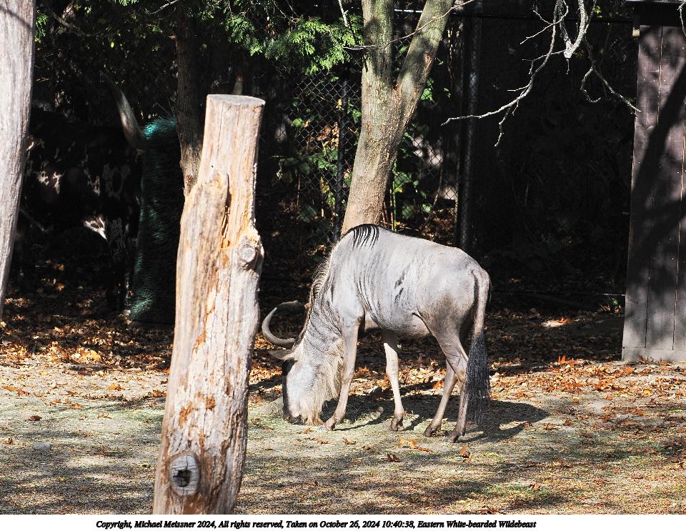 Picture #1: Eastern White-bearded Wildebeast Thumb: 480x360, 70,191 bytes (69K) Small: 960x743, 229,304 bytes (224K), (html file) Copyright, Michael Meissner 2024, All rights reserved OM OM1 camera with Olympus-m43 100-400mm f/5.0-6.3 lens f/7.1, ISO 200, 1/400 sec, 100.0mm, auto mode, vivid color, matrix metering, continous focus, IS Auto 35mm equivalent focal length 200.0mm Programs used: crop, raw therapee Taken by Michael Meissner on October 26, 2024 10:40:38 Last modified on October 29, 2024 at 02:19 |