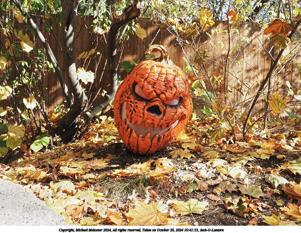 Picture #4: Jack-O-Lantern Thumb: 480x360, 90,021 bytes (88K) Small: 960x743, 309,787 bytes (303K), (html file) Copyright, Michael Meissner 2024, All rights reserved Olympus E-M5-III camera with Olympus-m43 12-200mm f/3.5-6.3 lens f/6.3, ISO 200, 1/125 sec, 18.0mm, auto mode, vivid color, SHQ, matrix metering, bias 0.3, IS Auto, anti-shock 35mm equivalent focal length 36.0mm Programs used: crop, raw therapee Taken by Michael Meissner on October 26, 2024 10:41:53 Last modified on October 29, 2024 at 02:14 |
