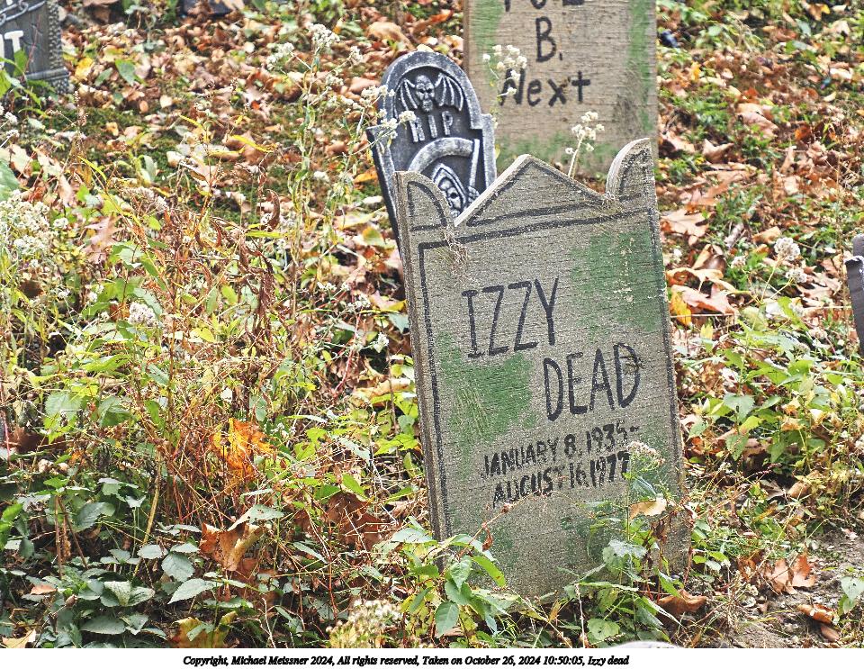 Picture #8: Izzy dead Thumb: 480x360, 91,386 bytes (90K) Small: 960x743, 312,529 bytes (306K), (html file) Copyright, Michael Meissner 2024, All rights reserved Olympus E-M5-III camera with Olympus-m43 12-200mm f/3.5-6.3 lens f/6.3, ISO 500, 1/125 sec, 70.0mm, auto mode, vivid color, SHQ, matrix metering, bias 0.3, IS Auto, anti-shock 35mm equivalent focal length 140.0mm Programs used: crop, raw therapee Taken by Michael Meissner on October 26, 2024 10:50:05 Last modified on October 29, 2024 at 02:25 |