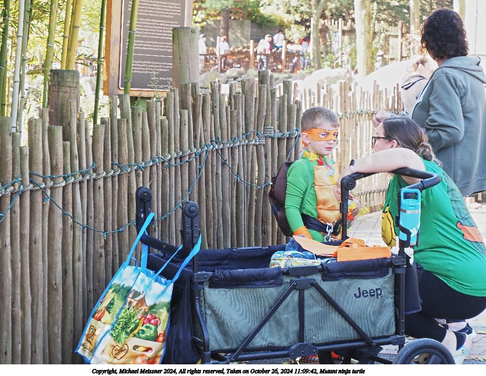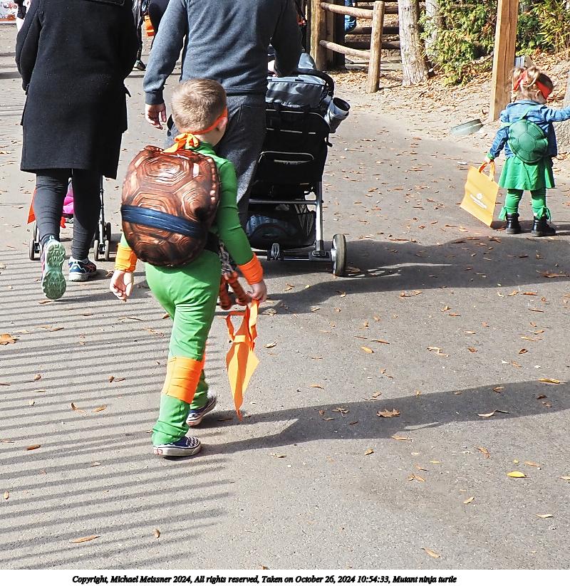 Picture #18: Mutant ninja turtle Thumb: 400x400, 63,420 bytes (62K) Small: 800x823, 204,407 bytes (200K), (html file) Copyright, Michael Meissner 2024, All rights reserved Olympus E-M5-III camera with Olympus-m43 12-200mm f/3.5-6.3 lens f/7.1, ISO 200, 1/200 sec, 14.0mm, auto mode, vivid color, SHQ, matrix metering, bias 0.7, IS Auto, anti-shock 35mm equivalent focal length 28.0mm Programs used: crop, gimp, raw therapee Taken by Michael Meissner on October 26, 2024 10:54:33 Last modified on October 29, 2024 at 02:32 |