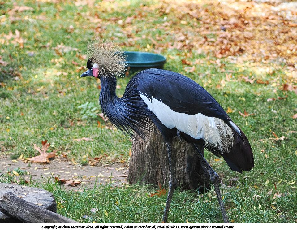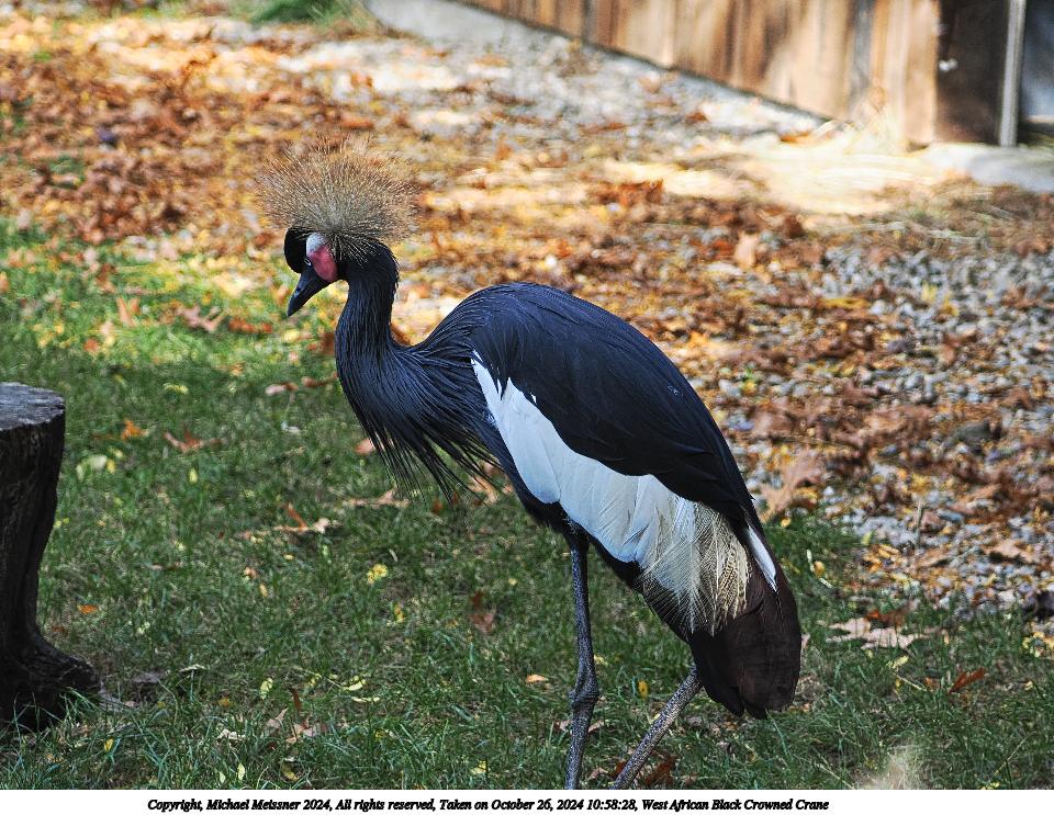 Picture #2: West African Black Crowned Crane #2 Thumb: 480x360, 73,769 bytes (73K) Small: 960x743, 219,314 bytes (215K), (html file) Copyright, Michael Meissner 2024, All rights reserved OM OM1 camera with Olympus-m43 100-400mm f/5.0-6.3 lens f/5.0, ISO 800, 1/200 sec, 100.0mm, auto mode, vivid color, matrix metering, continous focus, IS Auto, anti-shock 35mm equivalent focal length 200.0mm Programs used: crop, raw therapee Taken by Michael Meissner on October 26, 2024 10:58:33 Last modified on October 29, 2024 at 02:41 |