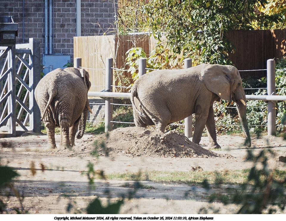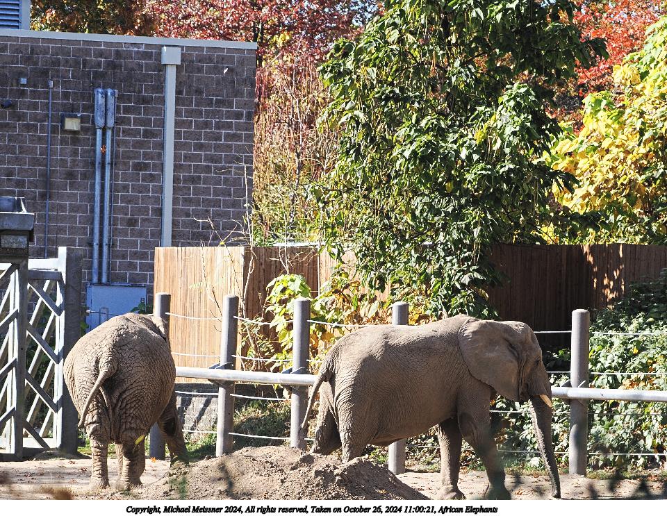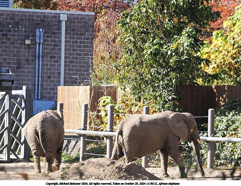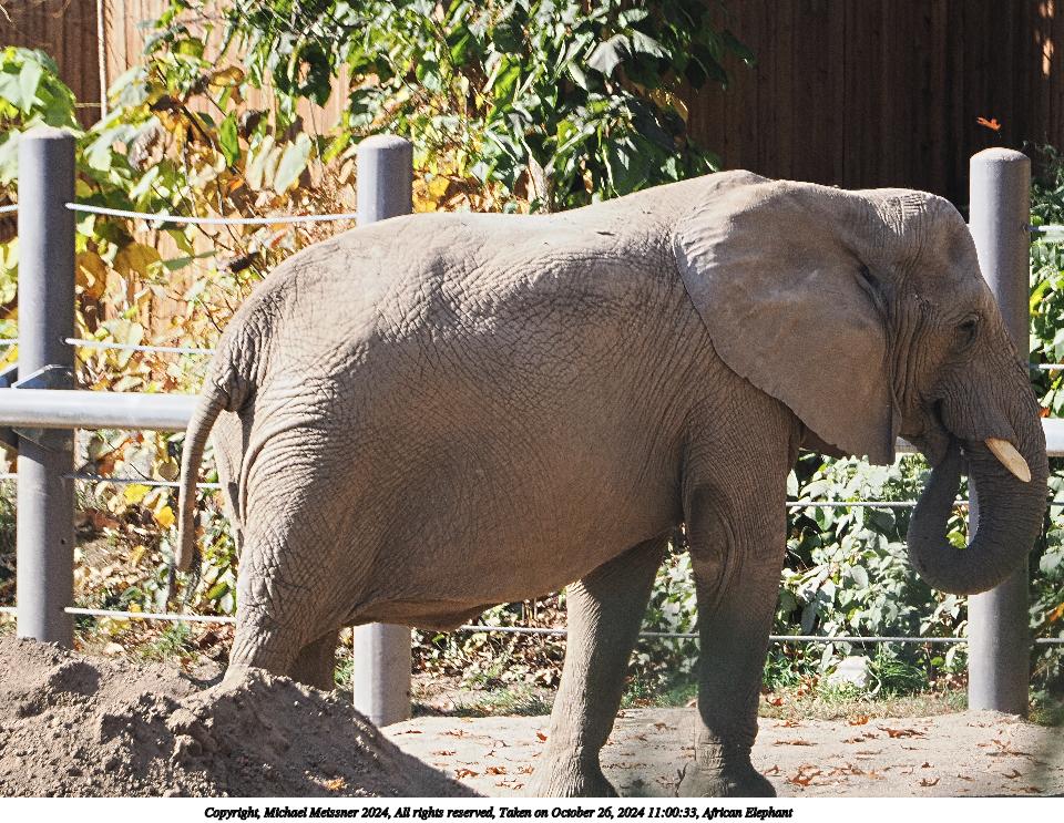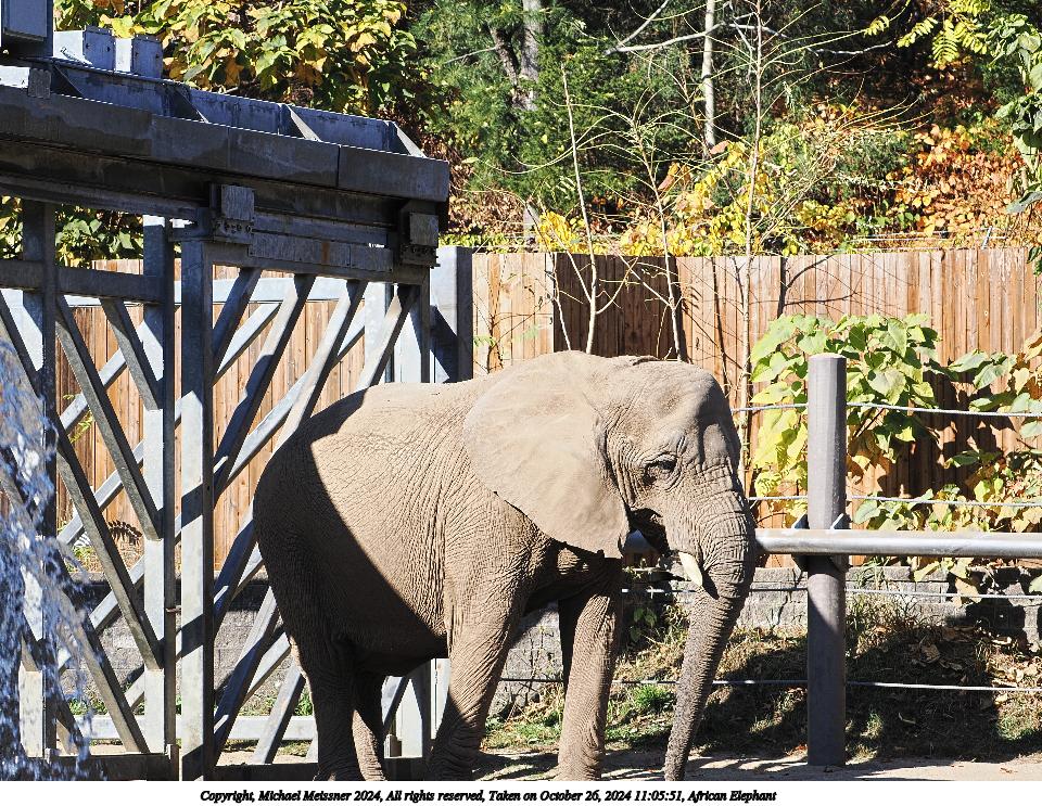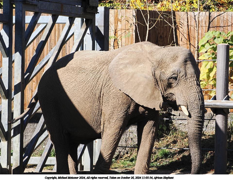 Picture #3: African Elephant Thumb: 480x360, 73,617 bytes (72K) Small: 960x743, 224,623 bytes (220K), (html file) Copyright, Michael Meissner 2024, All rights reserved OM OM1 camera with Olympus-m43 100-400mm f/5.0-6.3 lens f/6.3, ISO 1000, 1/800 sec, 400.0mm, auto mode, vivid color, matrix metering, continous focus, IS Auto 35mm equivalent focal length 801.0mm Programs used: crop, raw therapee Taken by Michael Meissner on October 26, 2024 11:00:33 Last modified on October 29, 2024 at 03:02 |
