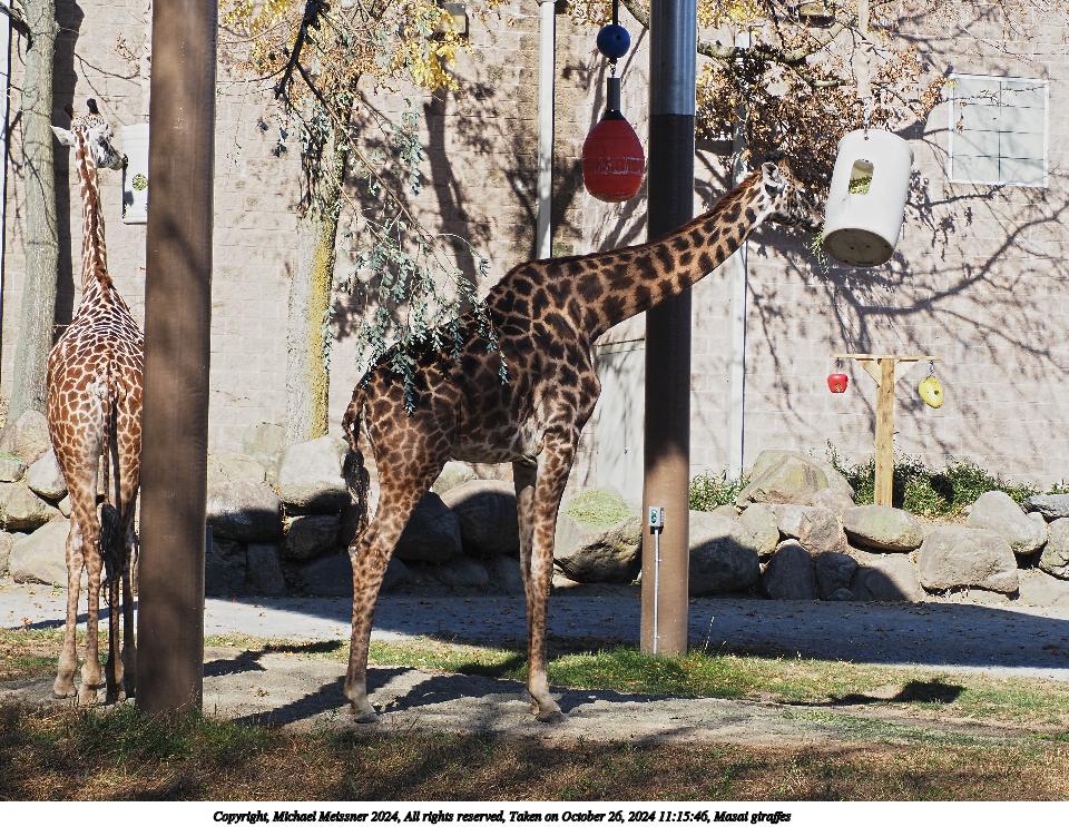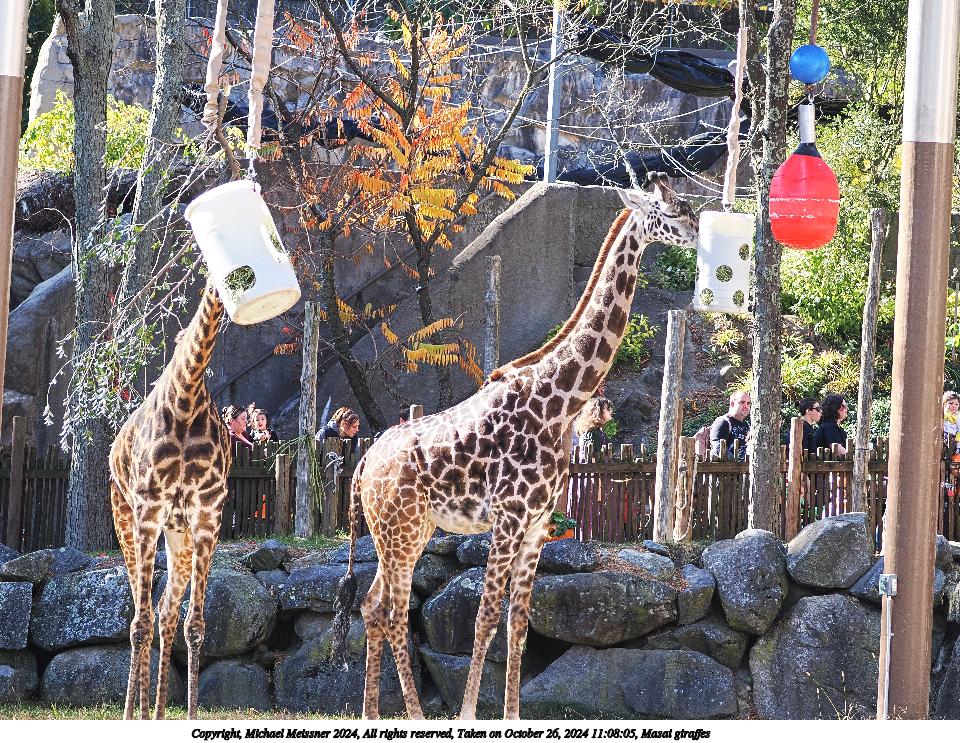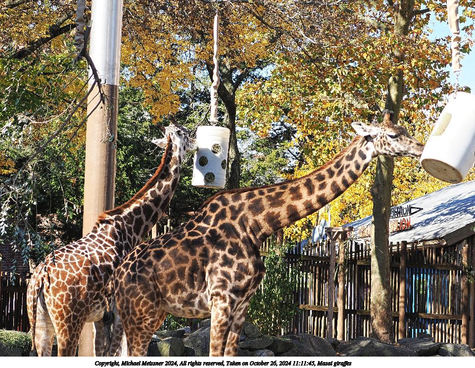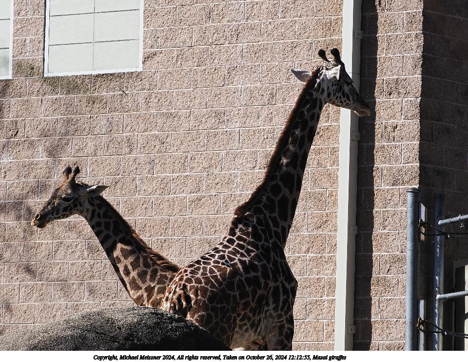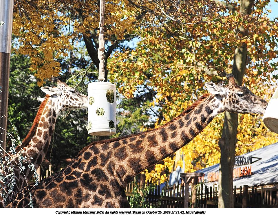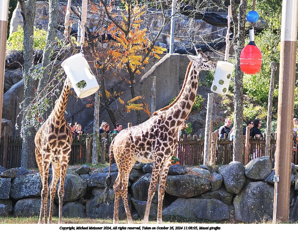 Picture #1: Masai giraffes Thumb: 480x360, 83,846 bytes (82K) Small: 960x743, 288,203 bytes (282K), (html file) Copyright, Michael Meissner 2024, All rights reserved OM OM1 camera with Olympus-m43 100-400mm f/5.0-6.3 lens f/5.0, ISO 400, 1/200 sec, 100.0mm, auto mode, vivid color, matrix metering, continous focus, IS Auto, anti-shock 35mm equivalent focal length 200.0mm Programs used: crop, raw therapee Taken by Michael Meissner on October 26, 2024 11:08:03 Last modified on October 29, 2024 at 02:52 |