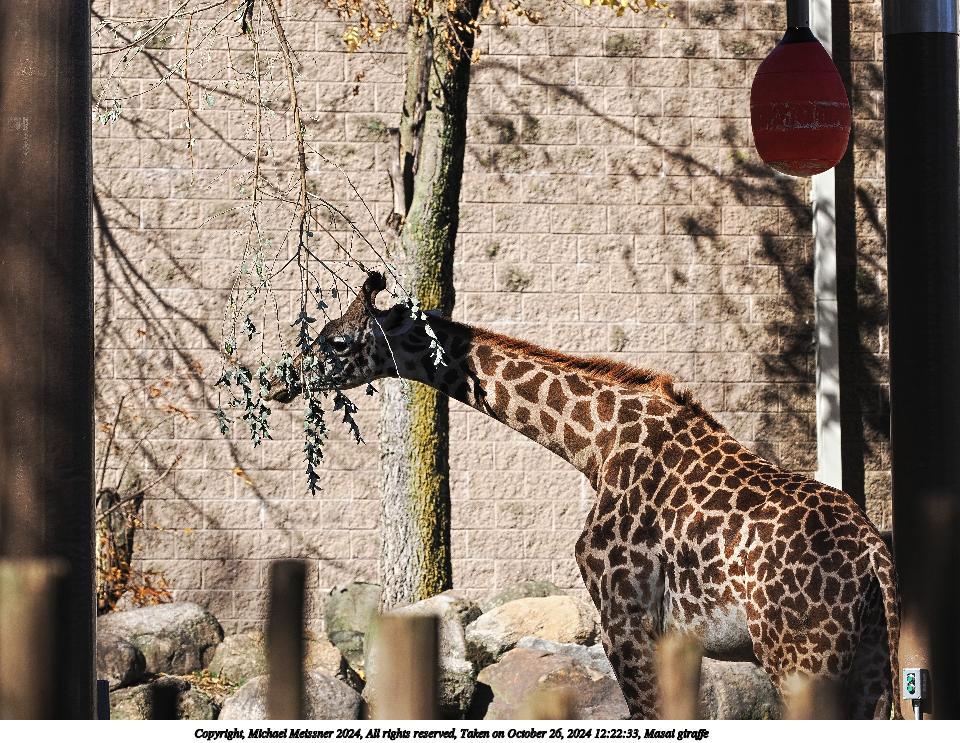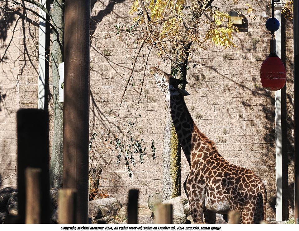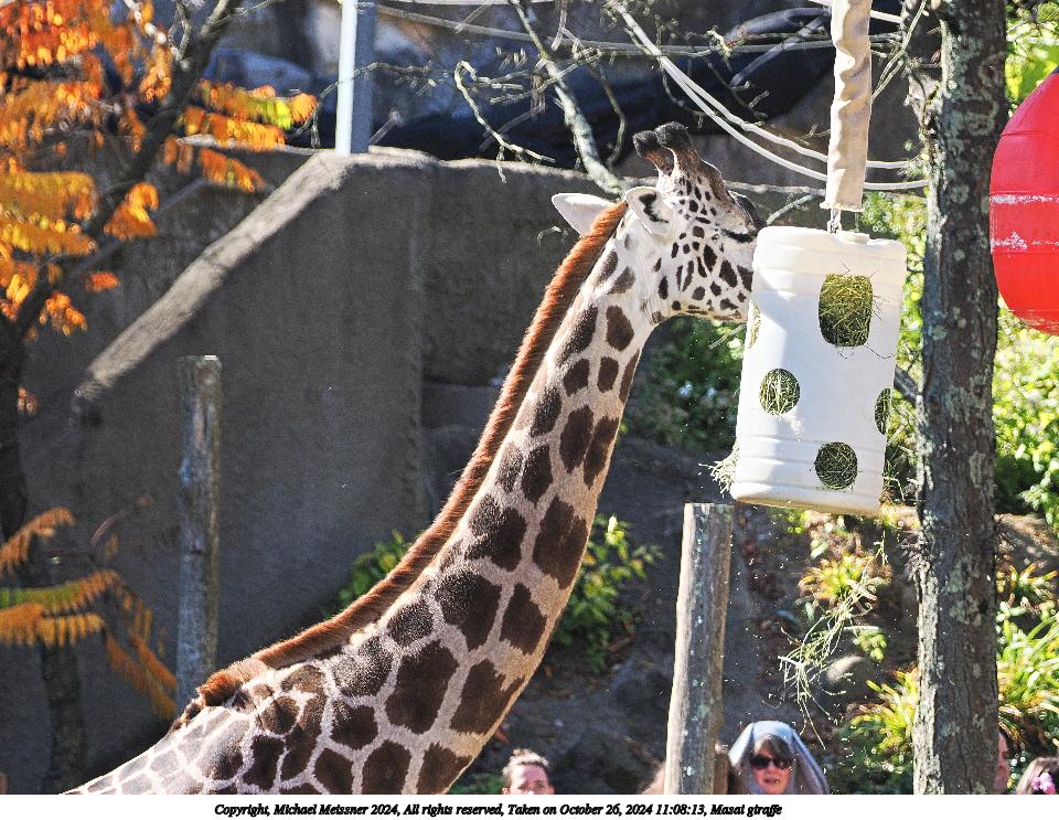Picture #14: Masai giraffe #6 Thumb: 480x360, 74,924 bytes (74K) Small: 960x743, 224,064 bytes (219K), (html file) Copyright, Michael Meissner 2024, All rights reserved OM OM1 camera with Olympus-m43 40-150mm f/2.8 lens f/5.6, ISO 200, 1/1000 sec, 120.0mm, auto mode, vivid color, matrix metering, continous focus, IS Auto 35mm equivalent focal length 240.0mm Programs used: crop, raw therapee Taken by Michael Meissner on October 26, 2024 12:22:33 Last modified on October 30, 2024 at 20:43 |