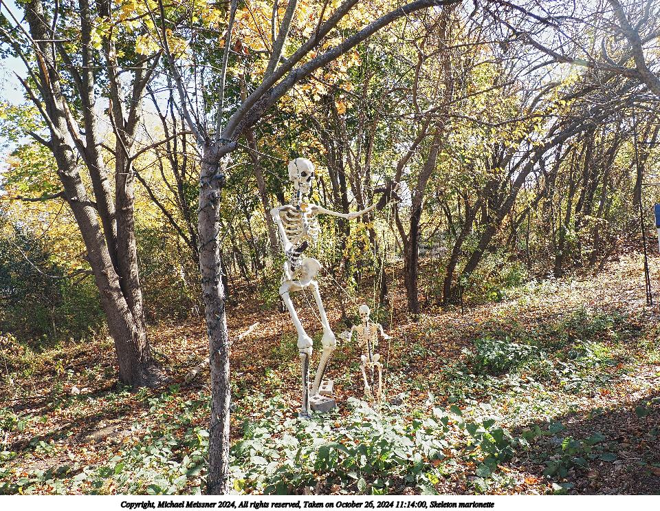 Picture #33: Skeleton marionette Thumb: 480x360, 95,798 bytes (94K) Small: 960x743, 388,684 bytes (380K), (html file) Copyright, Michael Meissner 2024, All rights reserved Olympus E-M5-III camera with Olympus-m43 12-200mm f/3.5-6.3 lens f/5.0, ISO 200, 1/125 sec, 12.0mm, auto mode, vivid color, SHQ, matrix metering, bias 0.7, IS Auto, anti-shock 35mm equivalent focal length 24.0mm Programs used: crop, raw therapee Taken by Michael Meissner on October 26, 2024 11:14:00 Last modified on October 29, 2024 at 03:00 |