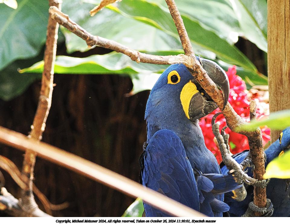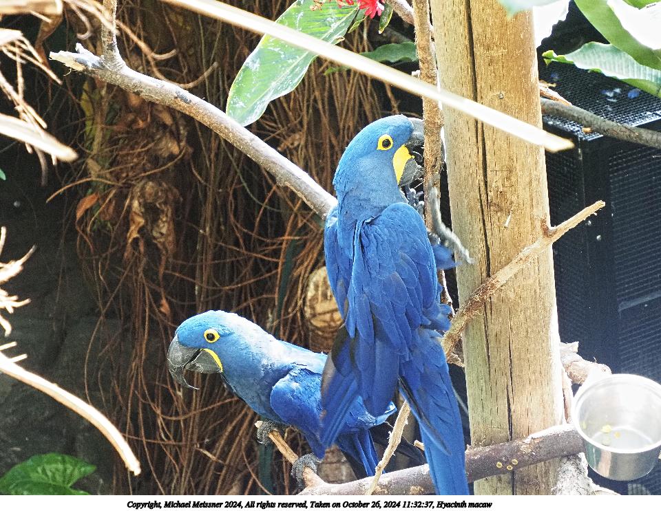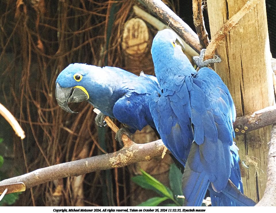 Picture #2: Hyacinth macaw #2 Thumb: 480x360, 57,270 bytes (56K) Small: 960x743, 140,743 bytes (138K), (html file) Copyright, Michael Meissner 2024, All rights reserved OM OM1 camera with Olympus-m43 100-400mm f/5.0-6.3 lens f/5.0, ISO 800, 1/200 sec, 100.0mm, auto mode, vivid color, matrix metering, continous focus, IS Auto, anti-shock 35mm equivalent focal length 200.0mm Programs used: crop, raw therapee Taken by Michael Meissner on October 26, 2024 11:30:04 Last modified on October 30, 2024 at 20:21 |