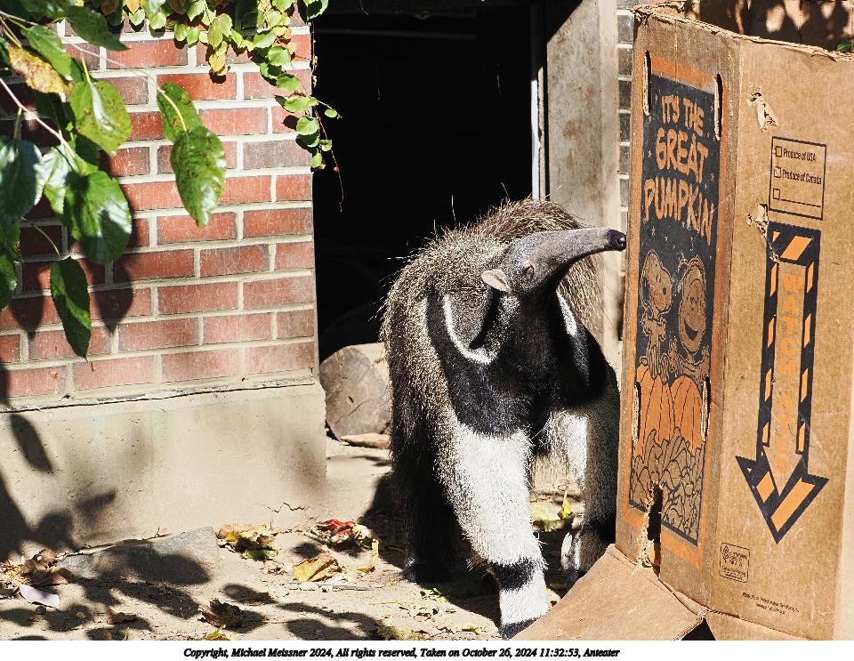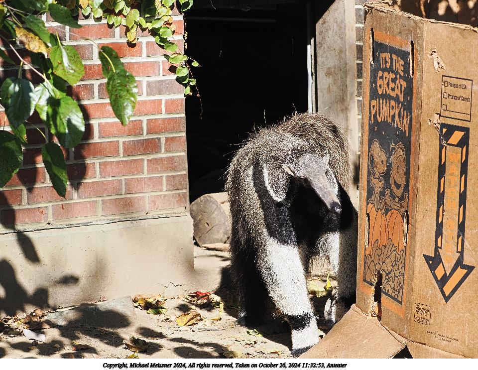 Picture #3: Anteater #3 Thumb: 480x360, 68,967 bytes (68K) Small: 960x743, 215,707 bytes (211K), (html file) Copyright, Michael Meissner 2024, All rights reserved OM OM1 camera with Olympus-m43 100-400mm f/5.0-6.3 lens f/6.3, ISO 200, 1/320 sec, 100.0mm, auto mode, vivid color, matrix metering, continous focus, IS Auto, anti-shock 35mm equivalent focal length 200.0mm Programs used: crop, raw therapee Taken by Michael Meissner on October 26, 2024 11:32:53 Last modified on October 30, 2024 at 20:25 |