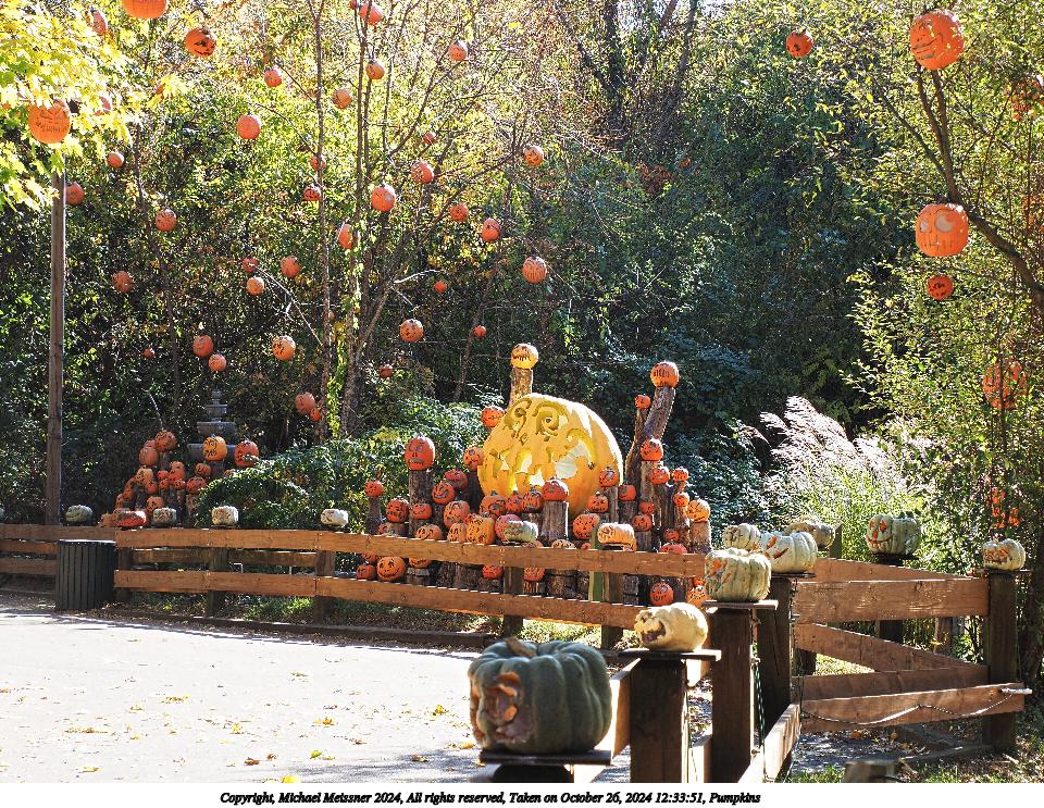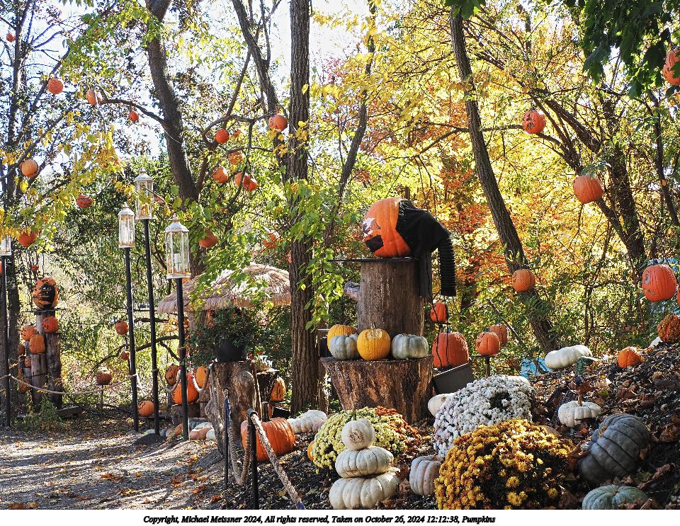 Picture #26: Pumpkins Thumb: 480x360, 89,452 bytes (88K) Small: 960x743, 325,048 bytes (318K), (html file) Copyright, Michael Meissner 2024, All rights reserved Olympus E-M5-III camera with Olympus-m43 12-200mm f/3.5-6.3 lens f/5.6, ISO 200, 1/80 sec, 34.0mm, auto mode, vivid color, SHQ, matrix metering, bias 0.7, IS Auto, anti-shock 35mm equivalent focal length 68.0mm Programs used: crop, raw therapee Taken by Michael Meissner on October 26, 2024 11:04:45 Last modified on October 29, 2024 at 02:47 |