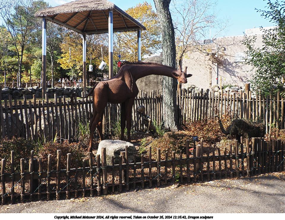 Picture #44: Dragon sculpture Thumb: 480x360, 81,184 bytes (80K) Small: 960x743, 317,473 bytes (311K), (html file) Copyright, Michael Meissner 2024, All rights reserved Olympus E-M5-III camera with Olympus-m43 12-200mm f/3.5-6.3 lens f/7.1, ISO 200, 1/160 sec, 15.0mm, auto mode, vivid color, SHQ, matrix metering, IS Auto, anti-shock 35mm equivalent focal length 30.0mm Programs used: crop, raw therapee Taken by Michael Meissner on October 26, 2024 12:16:42 Last modified on October 30, 2024 at 20:41 |