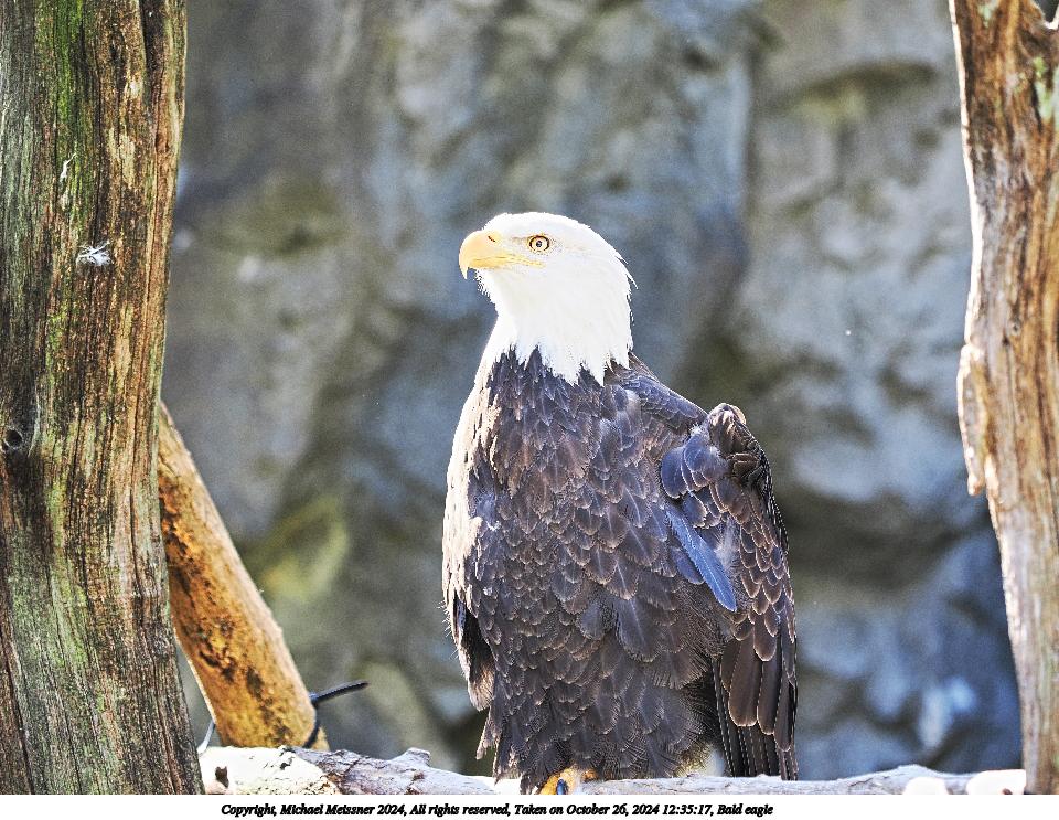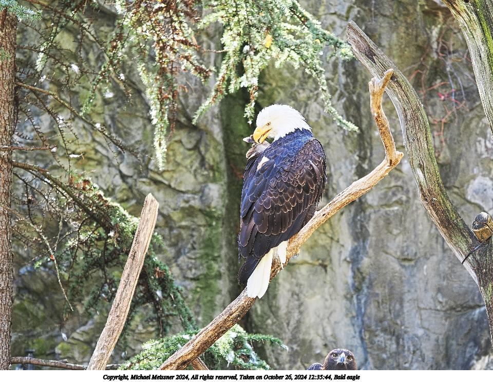 Picture #1: Bald eagle Thumb: 480x360, 71,588 bytes (70K) Small: 960x743, 197,235 bytes (193K), (html file) Copyright, Michael Meissner 2024, All rights reserved OM OM1 camera with Olympus-m43 40-150mm f/2.8 lens f/2.8, ISO 250, 1/200 sec, 90.0mm, auto mode, vivid color, matrix metering, continous focus, IS Auto, anti-shock 35mm equivalent focal length 180.0mm Programs used: crop, raw therapee Taken by Michael Meissner on October 26, 2024 12:34:49 Last modified on October 30, 2024 at 20:50 |