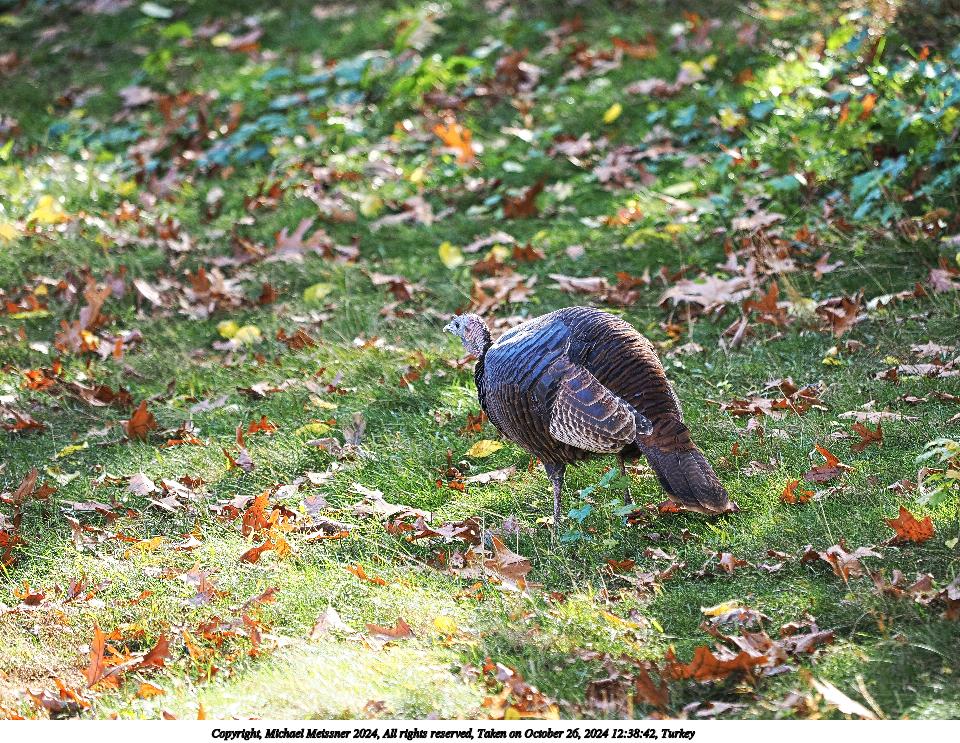 Picture #2: Turkey #2 Thumb: 480x360, 87,688 bytes (86K) Small: 960x743, 290,654 bytes (284K), (html file) Copyright, Michael Meissner 2024, All rights reserved OM OM1 camera with Olympus-m43 40-150mm f/2.8 lens f/2.8, ISO 250, 1/250 sec, 120.0mm, auto mode, vivid color, matrix metering, continous focus, IS Auto, anti-shock 35mm equivalent focal length 240.0mm Programs used: crop, raw therapee Taken by Michael Meissner on October 26, 2024 12:38:50 Last modified on October 30, 2024 at 20:54 |