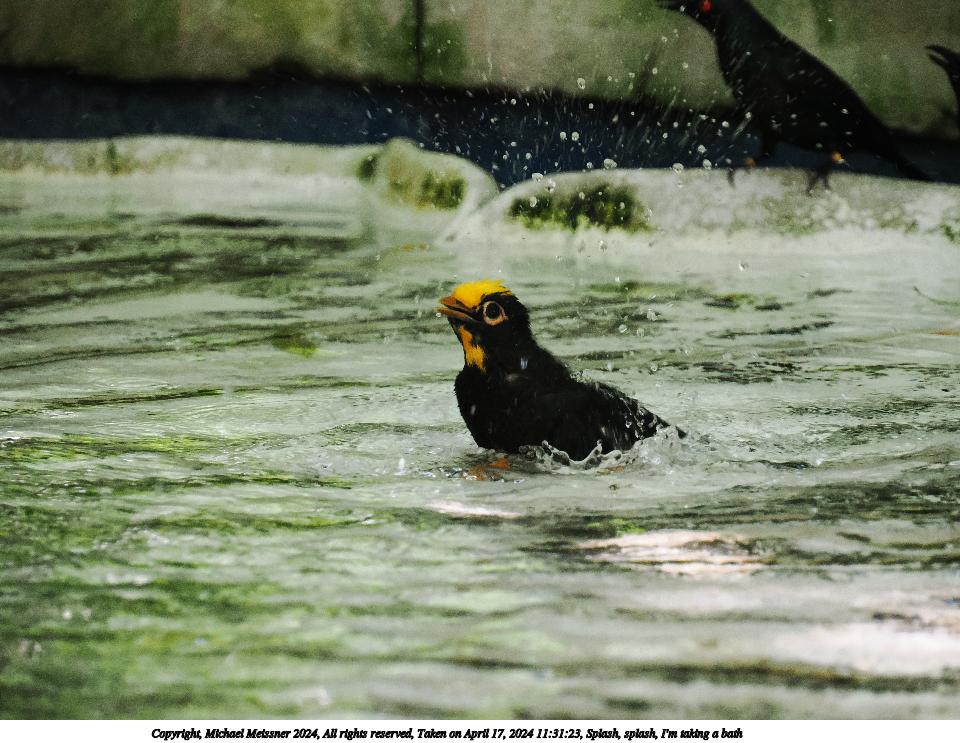Picture #2: Splash, splash, I'm taking a bath Thumb: 480x360, 55,076 bytes (54K) Small: 960x743, 141,169 bytes (138K), (html file) Copyright, Michael Meissner 2024, All rights reserved OM OM1 camera with Olympus-m43 12-200mm f/3.5-6.3 lens f/6.3, ISO 3200, 1/400 sec, 178.0mm, auto mode, vivid color, matrix metering, IS Auto, subject birds 35mm equivalent focal length 357.0mm Programs used: crop, raw therapee Taken by Michael Meissner on April 17, 2024 11:31:23 Last modified on May 12, 2024 at 18:21 |