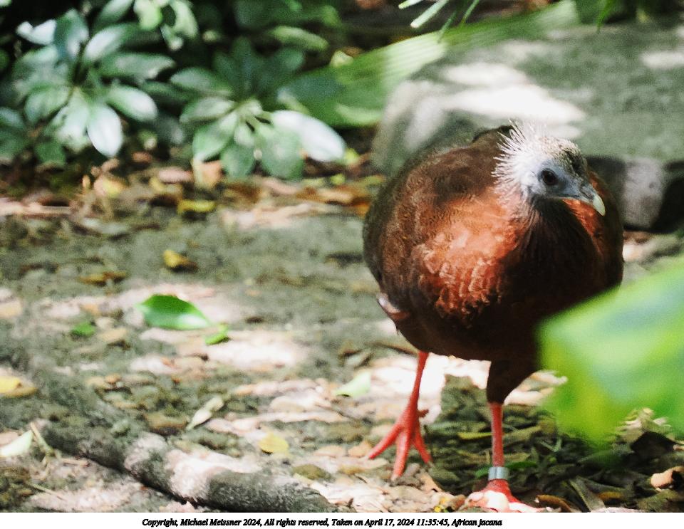 Picture #5: African jacana Thumb: 480x360, 57,025 bytes (56K) Small: 960x743, 139,017 bytes (136K), (html file) Copyright, Michael Meissner 2024, All rights reserved OM OM1 camera with Olympus-m43 12-200mm f/3.5-6.3 lens f/6.3, ISO 8000, 1/400 sec, 178.0mm, auto mode, vivid color, matrix metering, IS Auto, subject birds 35mm equivalent focal length 357.0mm Programs used: crop, raw therapee Taken by Michael Meissner on April 17, 2024 11:35:45 Last modified on May 12, 2024 at 18:26 |