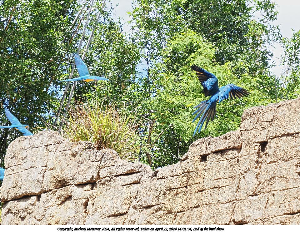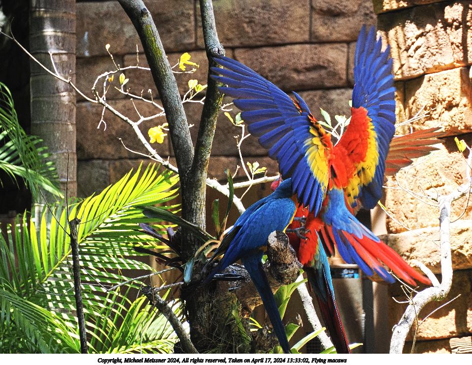 Picture #49: Flying macaws 960x743, 227,719 bytes (223K), (html file) Copyright, Michael Meissner 2024, All rights reserved OM OM1 camera with Olympus-m43 12-200mm f/3.5-6.3 lens f/6.3, ISO 1000, 1/400 sec, 200.0mm, auto mode, vivid color, matrix metering, IS Auto, subject birds 35mm equivalent focal length 401.0mm Programs used: crop, raw therapee Taken by Michael Meissner on April 17, 2024 13:33:02 Last modified on May 15, 2024 at 01:55 |