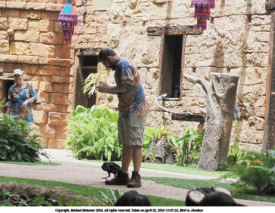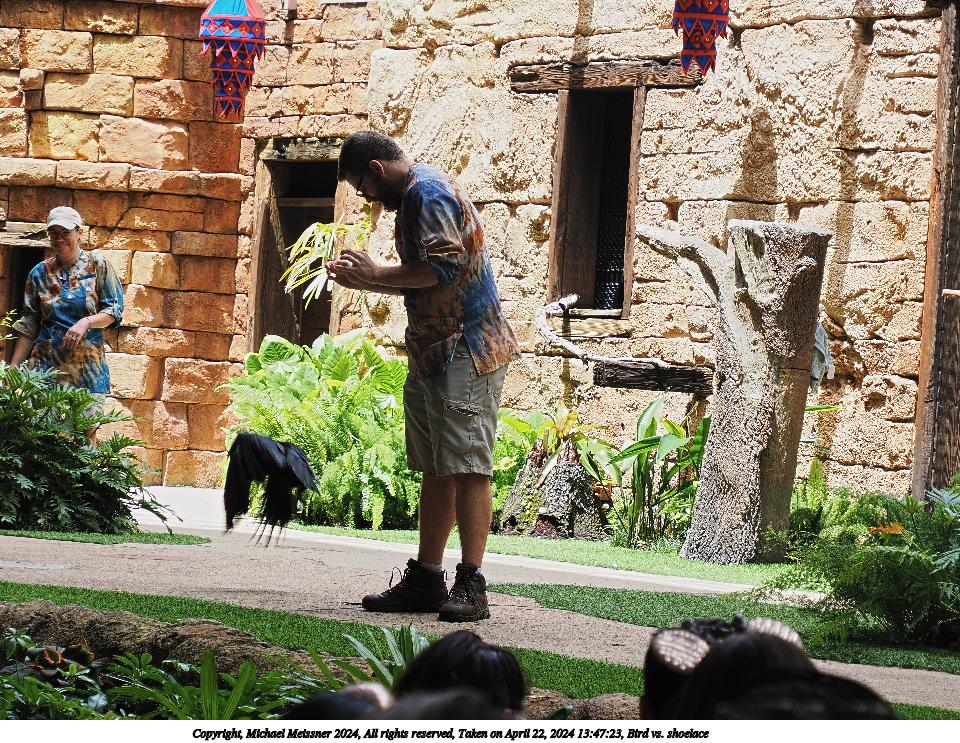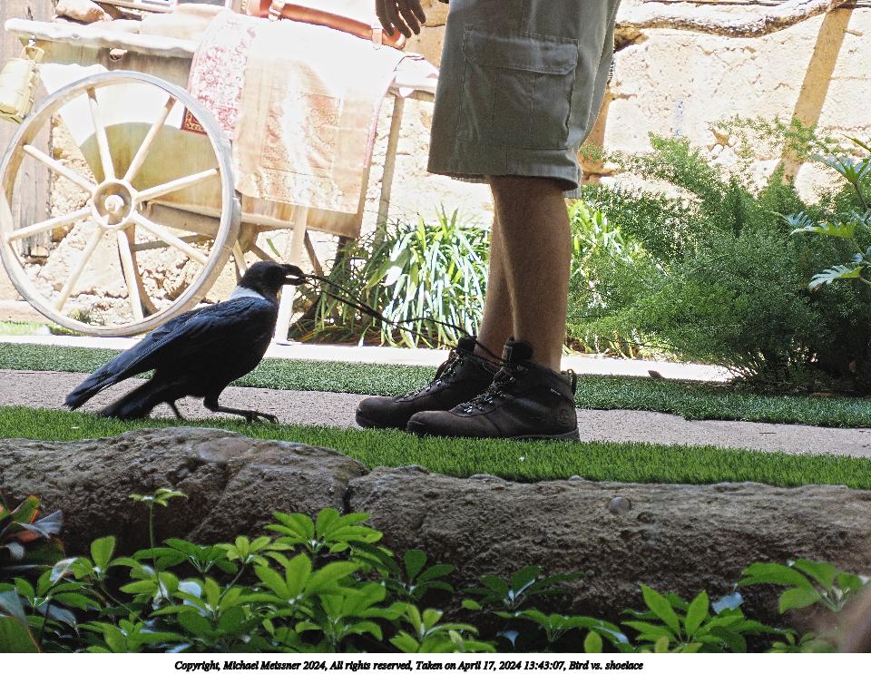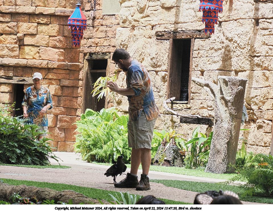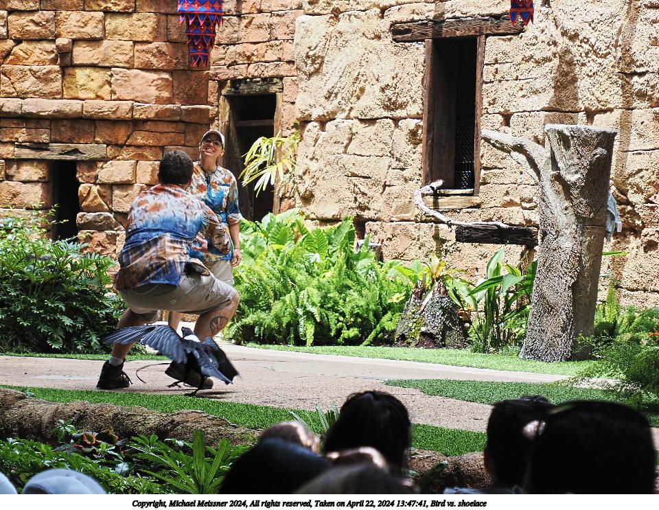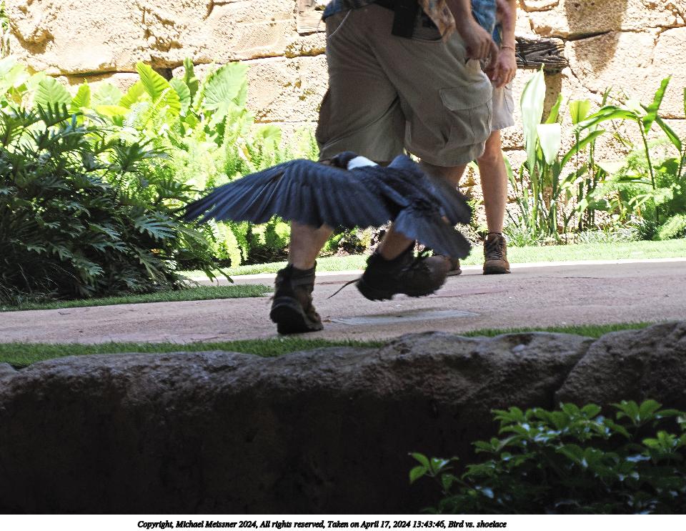 Picture #20: Bird vs. shoelace #6 960x743, 282,153 bytes (276K), (html file) Copyright, Michael Meissner 2024, All rights reserved OM OM1 camera with Olympus-m43 12-200mm f/3.5-6.3 lens f/6.3, ISO 200, 1/160 sec, 70.0mm, auto mode, vivid color, center weight metering, continous focus, IS Auto, subject birds, anti-shock 35mm equivalent focal length 140.0mm Programs used: crop, raw therapee Taken by Michael Meissner on April 22, 2024 13:47:41 Last modified on May 15, 2024 at 02:14 |