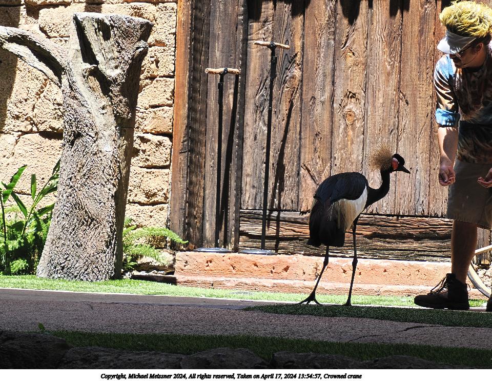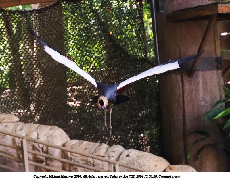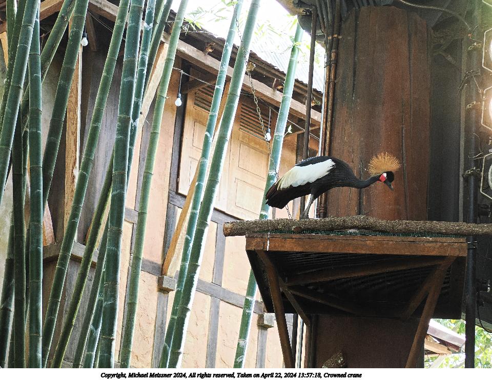 Picture #8: Crowned crane #2 960x743, 187,772 bytes (184K), (html file) Copyright, Michael Meissner 2024, All rights reserved OM OM1 camera with Olympus-m43 12-200mm f/3.5-6.3 lens f/5.6, ISO 1000, 1/100 sec, 45.0mm, auto mode, vivid color, center weight metering, continous focus, IS Auto, subject birds (not found), anti-shock 35mm equivalent focal length 90.0mm Programs used: crop, raw therapee Taken by Michael Meissner on April 22, 2024 13:57:18 Last modified on May 15, 2024 at 02:17 |