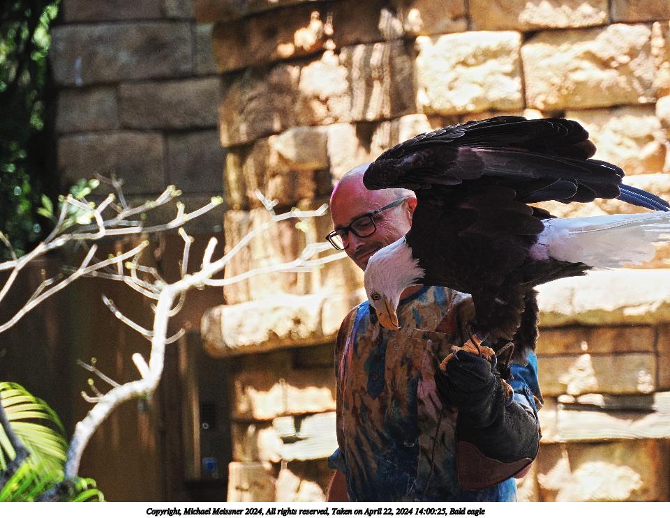 Picture #36: Bald eagle 960x743, 143,069 bytes (140K), (html file) Copyright, Michael Meissner 2024, All rights reserved OM OM1 camera with Olympus-m43 12-200mm f/3.5-6.3 lens f/6.3, ISO 320, 1/250 sec, 137.0mm, auto mode, vivid color, matrix metering, IS Auto, subject birds, anti-shock 35mm equivalent focal length 274.0mm Programs used: crop, gimp, raw therapee Taken by Michael Meissner on April 17, 2024 13:56:22 Last modified on May 15, 2024 at 02:03 |