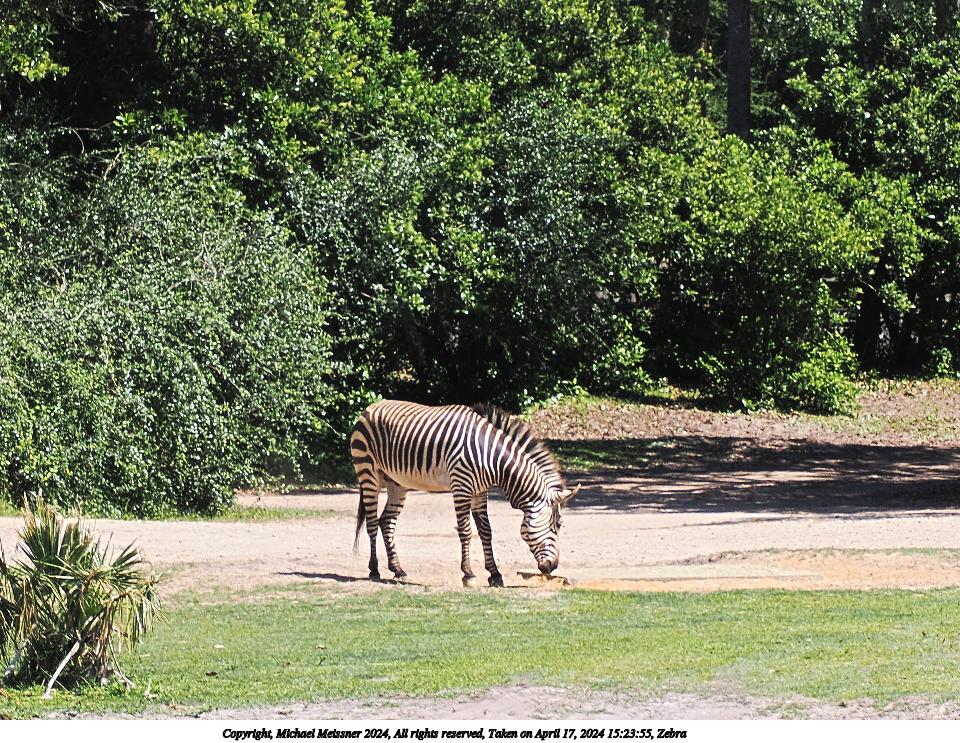 Picture #2: Zebra #2 Thumb: 480x360, 89,760 bytes (88K) Small: 960x743, 279,116 bytes (273K), (html file) Copyright, Michael Meissner 2024, All rights reserved OM OM1 camera with Olympus-m43 12-200mm f/3.5-6.3 lens f/9.0, ISO 200, 1/320 sec, 63.0mm, auto mode, vivid color, matrix metering, digital zoom x2, IS Auto, subject dogs & cats, anti-shock 35mm equivalent focal length 252.0mm, digital zoom x2 Programs used: crop, raw therapee Taken by Michael Meissner on April 17, 2024 15:23:55 Last modified on May 27, 2024 at 16:02 |