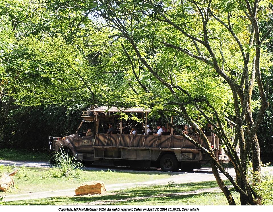 Picture #4: Tour vehicle Thumb: 480x360, 93,481 bytes (92K) Small: 960x743, 320,799 bytes (314K), (html file) Copyright, Michael Meissner 2024, All rights reserved OM OM1 camera with Olympus-m43 12-200mm f/3.5-6.3 lens f/7.1, ISO 200, 1/125 sec, 28.0mm, auto mode, vivid color, matrix metering, digital zoom x2, IS Auto, subject dogs & cats (not found), anti-shock 35mm equivalent focal length 112.0mm, digital zoom x2 Programs used: crop, raw therapee Taken by Michael Meissner on April 17, 2024 15:30:21 Last modified on May 27, 2024 at 16:08 |