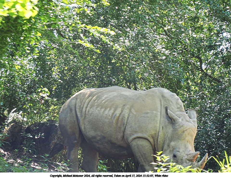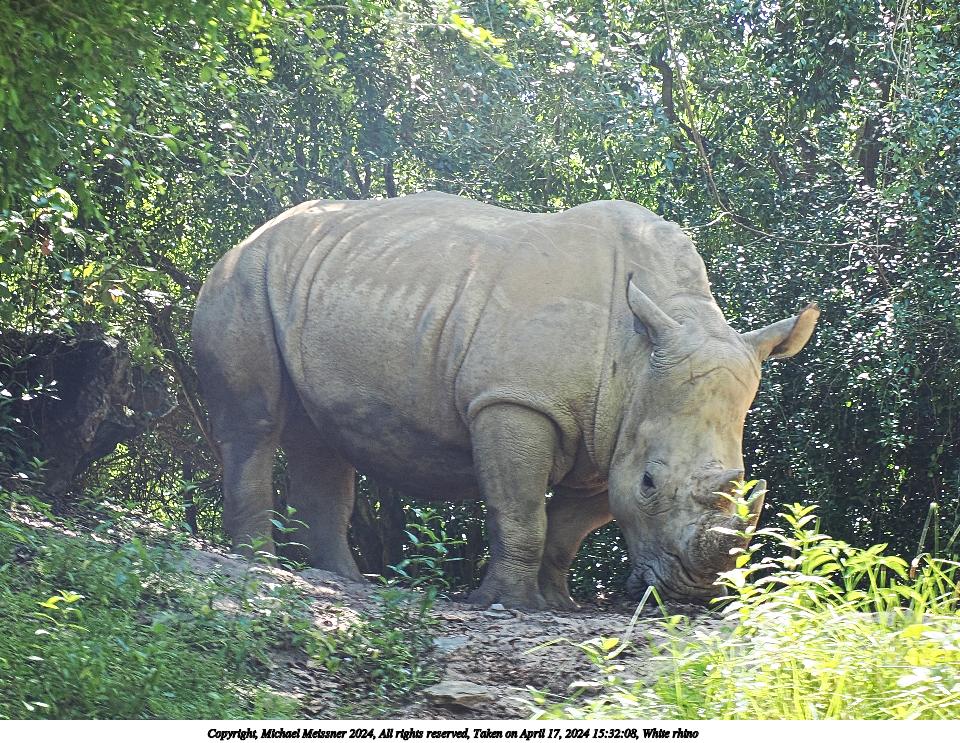 Picture #1: White rhino Thumb: 480x360, 86,444 bytes (85K) Small: 960x743, 276,227 bytes (270K), (html file) Copyright, Michael Meissner 2024, All rights reserved OM OM1 camera with Olympus-m43 12-200mm f/3.5-6.3 lens f/5.6, ISO 200, 1/80 sec, 37.0mm, auto mode, vivid color, matrix metering, digital zoom x2, IS Auto, subject dogs & cats, anti-shock 35mm equivalent focal length 148.0mm, digital zoom x2 Programs used: crop, raw therapee Taken by Michael Meissner on April 17, 2024 15:32:07 Last modified on May 27, 2024 at 16:08 |